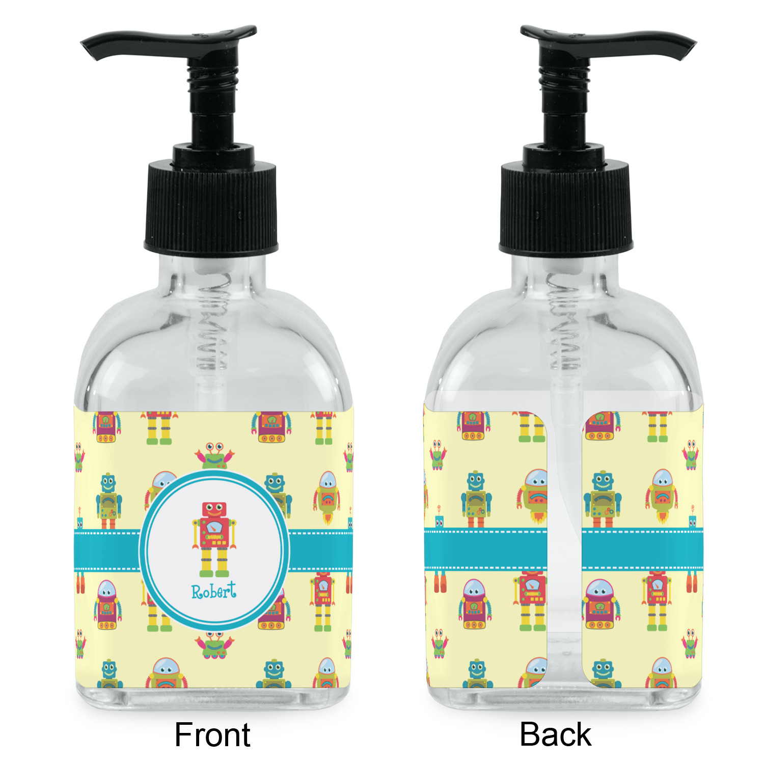 Crafted from a high-quality glass, these soap dispensers and lotion dispensers are durable and robust, while still looking elegant. They are sold with black pumps. Each soap dispenser pump measures at 6.5 by 2.25 inches. On these soap pumps, we display your customized design on a personalized vinyl adhesive on three sides. That way, you can judge how much liquid is in the bottles from the back.