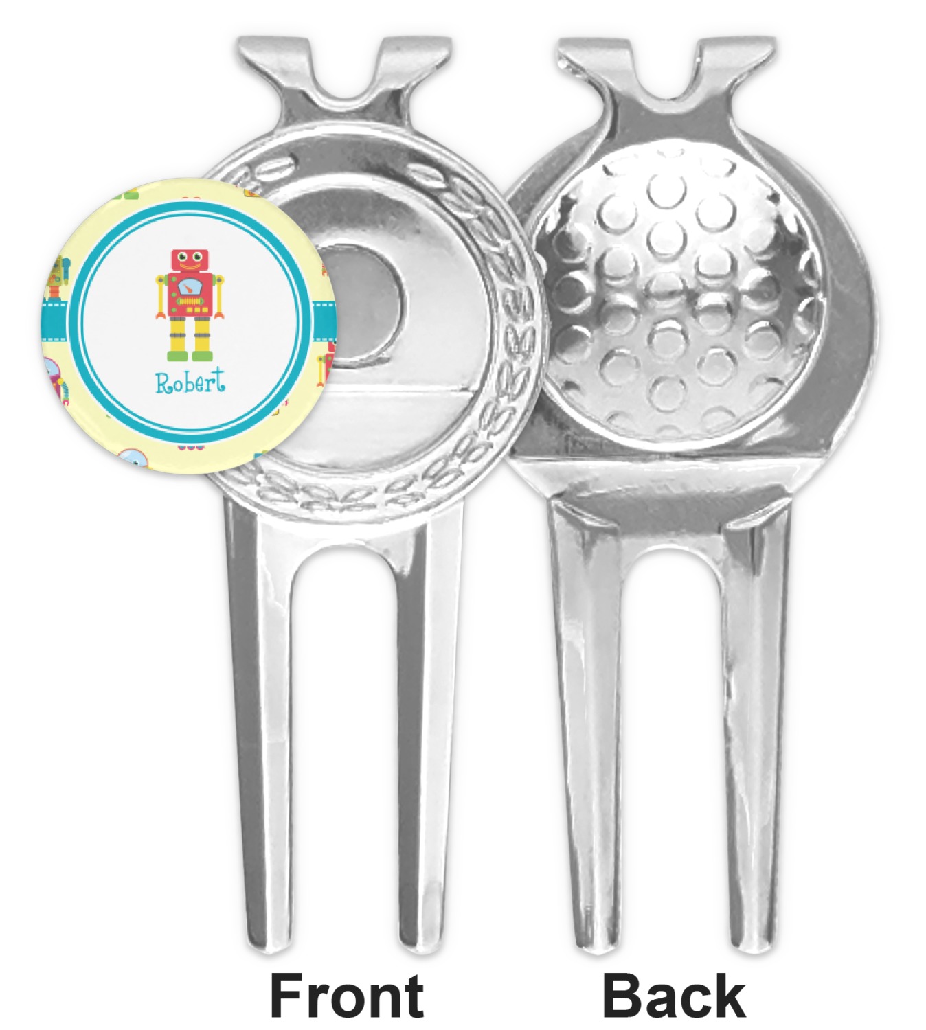 This great little stainless steel divot tool is two-pronged and is approximately 3.25" x 1.5". The two prongs make is a breeze to fix any divots. There is a golf ball shaped place on the back of your tool where your thumb can sit in order to do this easily.