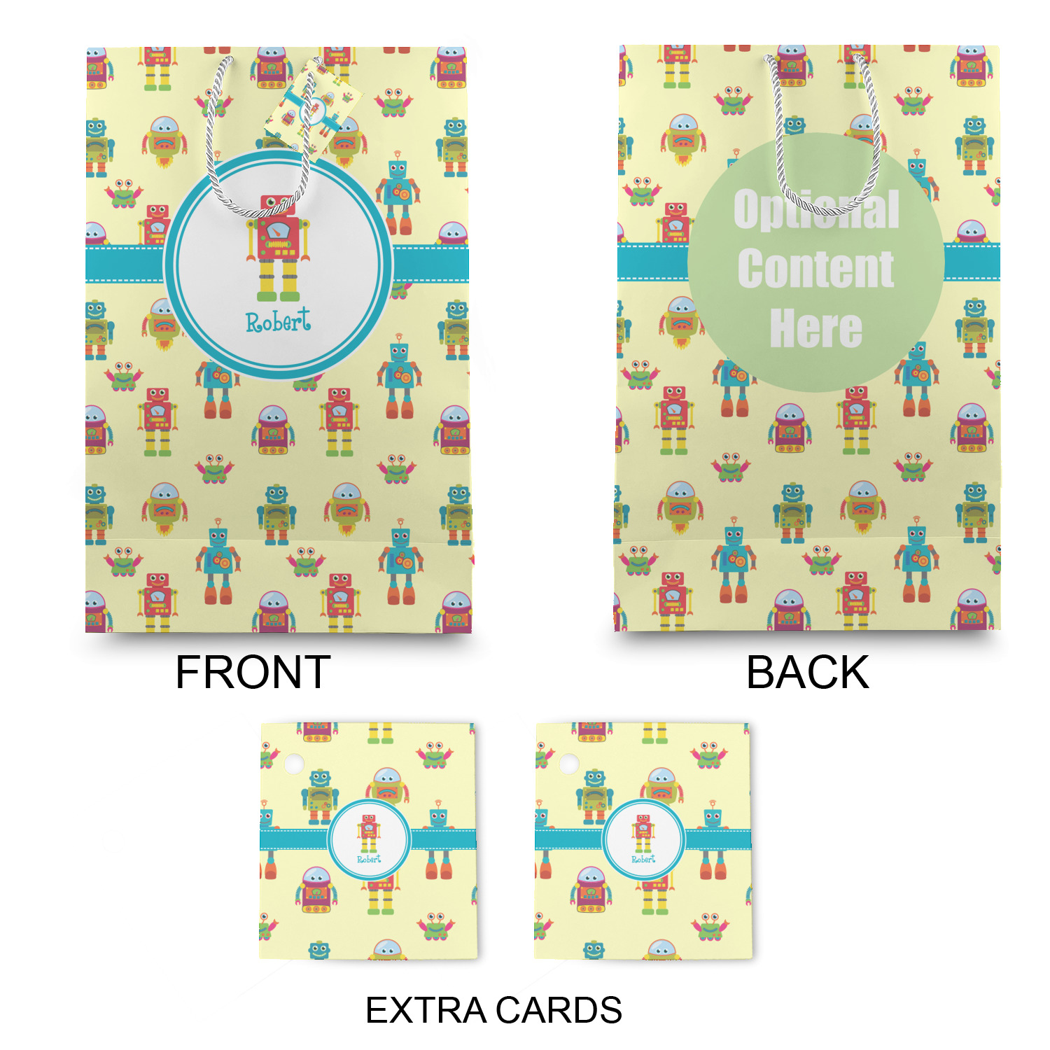 The bottom of the bag has a cardstock base to make the base more sturdy to hold up to all of your gifts. Each bag comes with one card on the rope handle and at least 1 extra card.