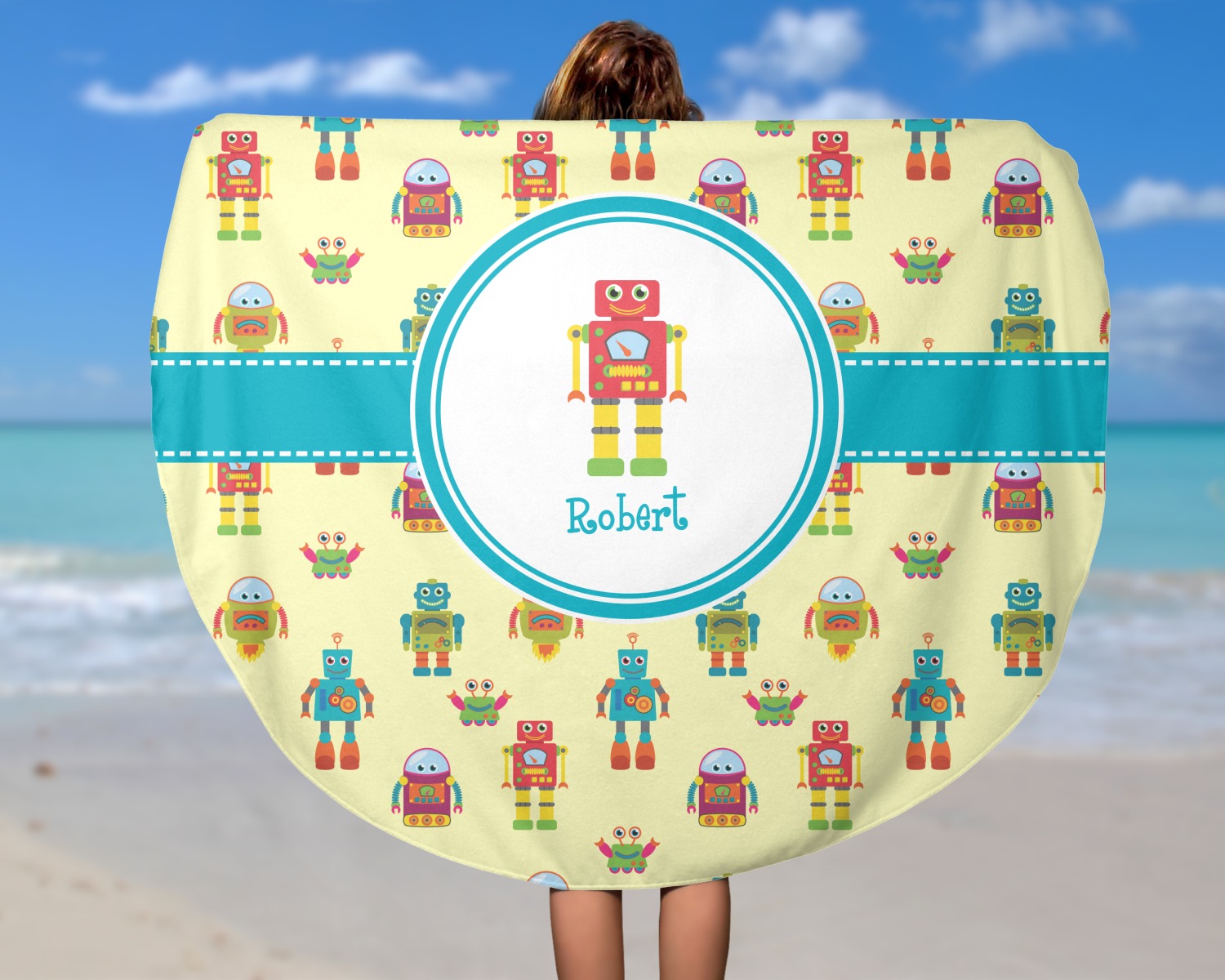 Think out of the box on your next beach, pool, or picnic day in style on your personalized round towel. This must have durable accessory is the perfect size for keeping you, and your possessions out of the sand. Sprawl out in the sun without getting your hands dirty, the unique round design allows for a full range of motion.