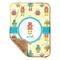 These toddler blankets are made of two different materials; the front side is made of a velvety, minky-like material that displays your customization and is perfect for a baby's delicate skin. The underside is crafted from a fluffy, sherpa fleece, and bears a classy, tan color. The dual texture gives your baby added comfort, as both sides are incredibly soft and plush. The corners of this blanket are rounded, and the ribbing of the blanket is a tan color, which complements the sandy color of the sherpa fleece. At approximately 30 by 40 inches, this custom baby blanket is the perfect size for babies and toddlers.