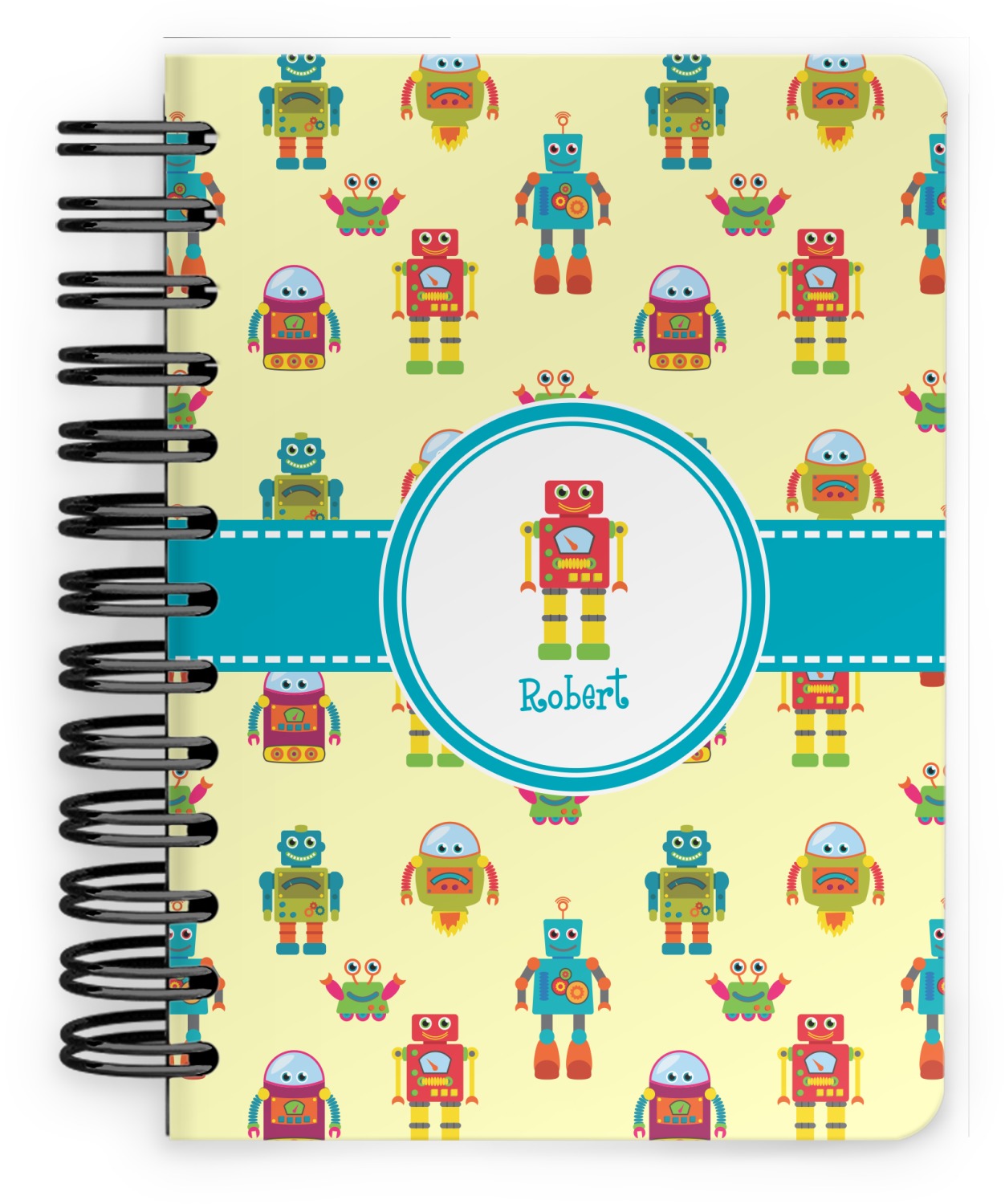 This spiral notebook includes 75 sheets of thick, ruled paper. The front and back of this custom notebook is made of a robust, laminate, plastic covering. We print your personalization on these two panels, underneath a glossy finish, which emphasizes the colors of your design. The two panels and the sheets of paper are held together by a sturdy, black coil. The paper within your bound notebook is perforated for easy, clean tearing.