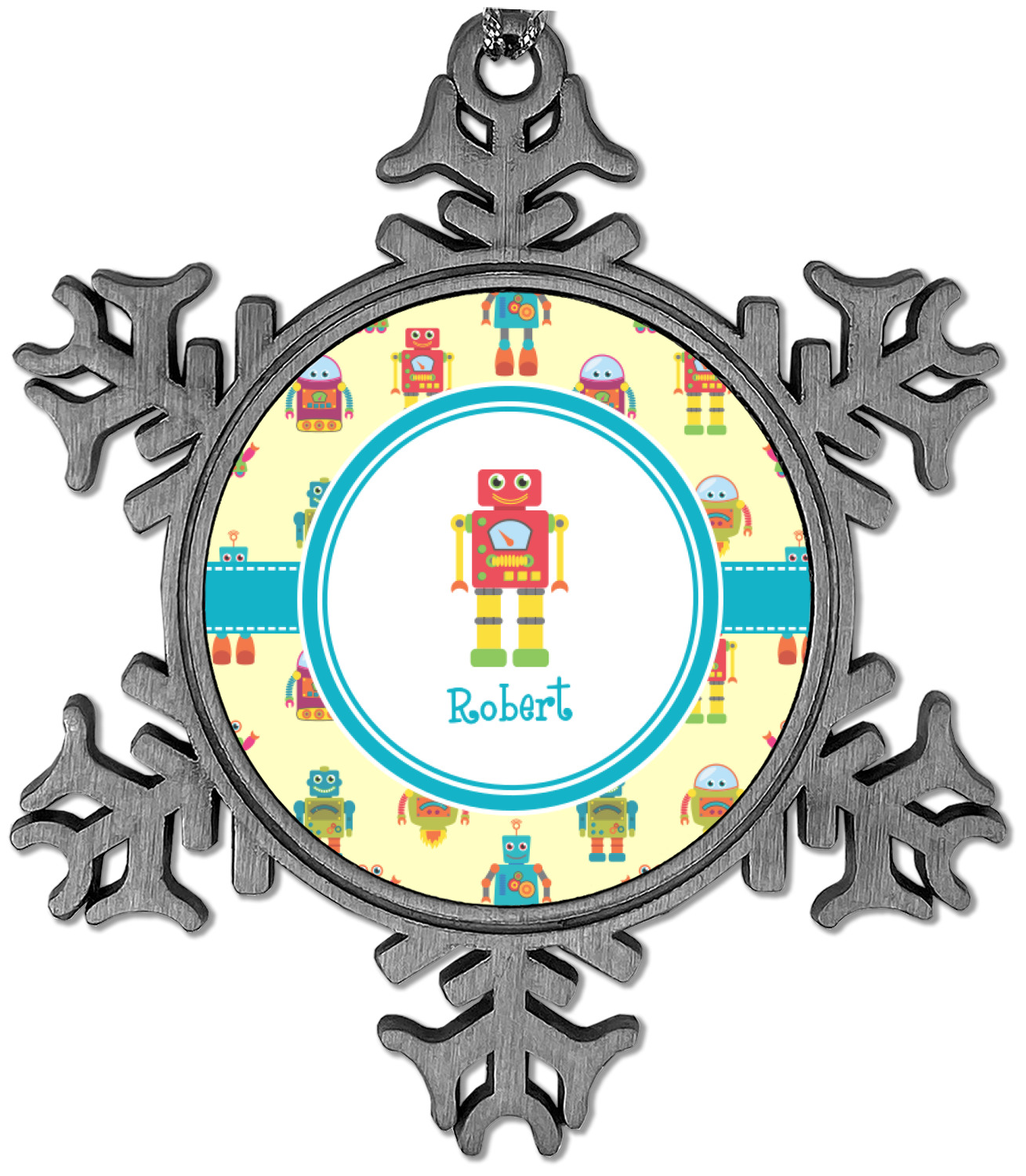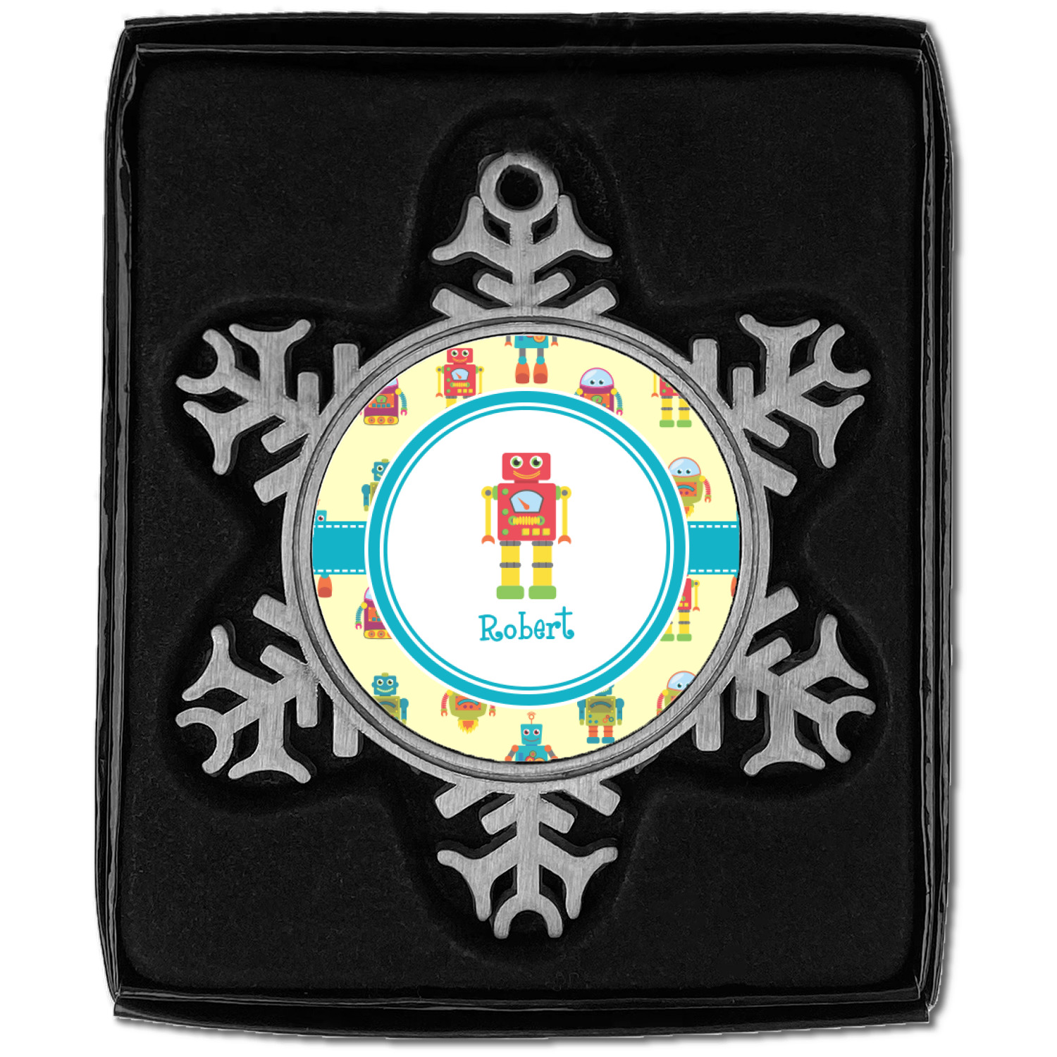 The snowflake shape ornament is an everlasting pewter material with a circular center to display your photo or design, giving it a unique vintage ornament look. Our personalized Christmas ornament comes in a small gift box for keepsake sure to preserve your picture ornament until the next holiday season. The snowflake shape is approximately 3 x 3 with a small silver accent string perfect for hanging. We print your photo or design in the center of the ornament with a size that is roughly 1.75 in diameter.