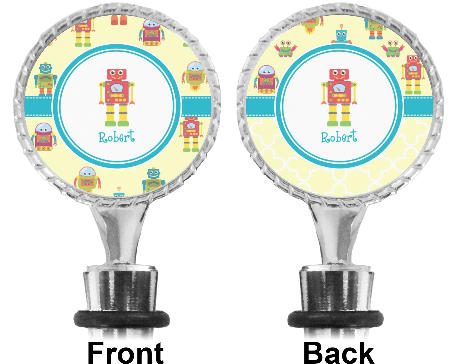 The top part of your bottle stopper is comprised of a zinc ring that displays your customization(s) in its middle, on both sides. The ring is heavy duty, with a bright chrome finish. The body of the wine stoppers have two silicone rings to provide an airtight seal. These wine bottle stoppers measure at 1.625" L x 0.8125" W x 4.625" H; your custom wine stopper is meant to fit into most standard-sized wine bottles.