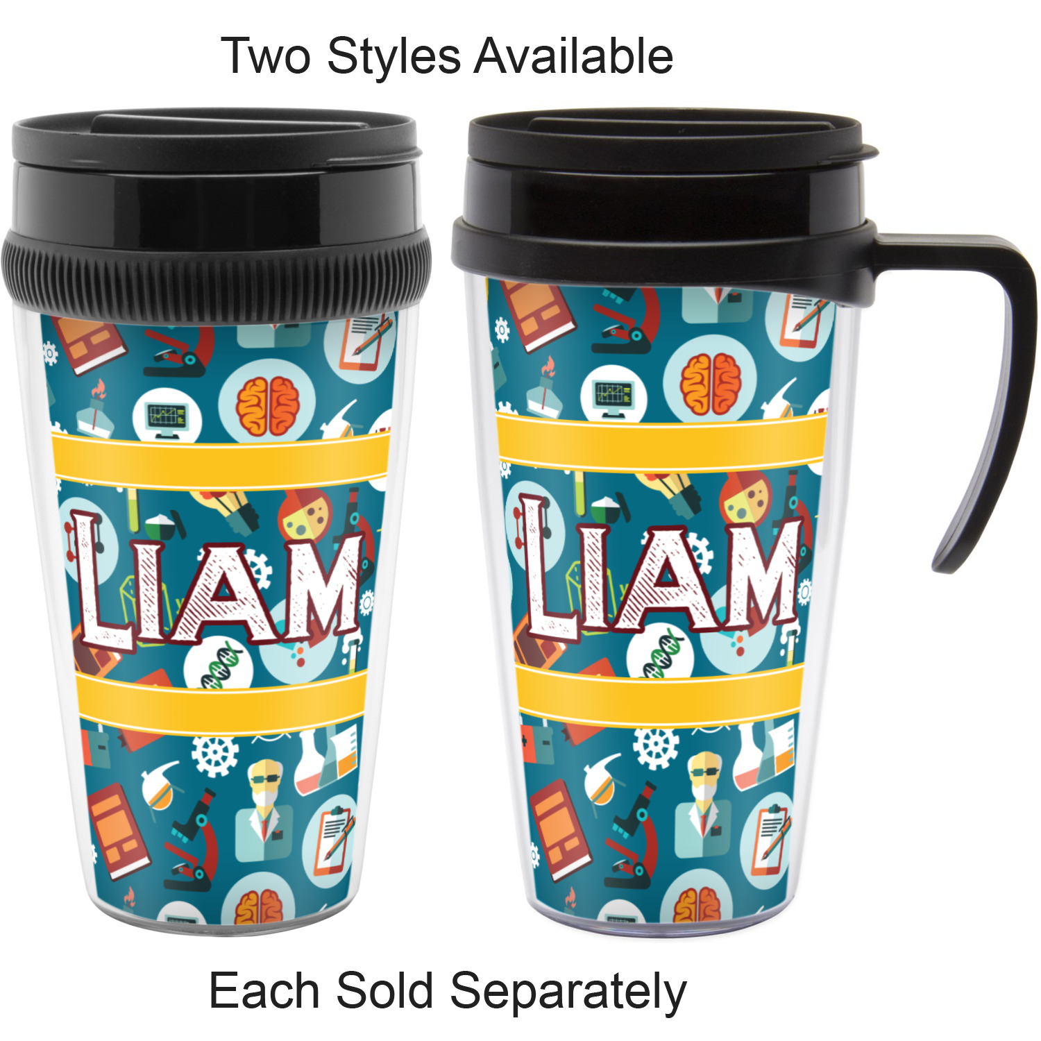 Keep your drink secure while on your daily commute with one of our personalized travel mugs! These travel mugs will add a splash of color and creativity to your kitchen counter-top, car cup holder, office desk, or wherever you choose to place them! With these custom mugs, you'll never have to settle for a boring, run-of-the-mill travel mug.