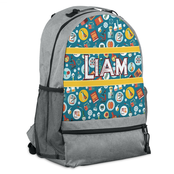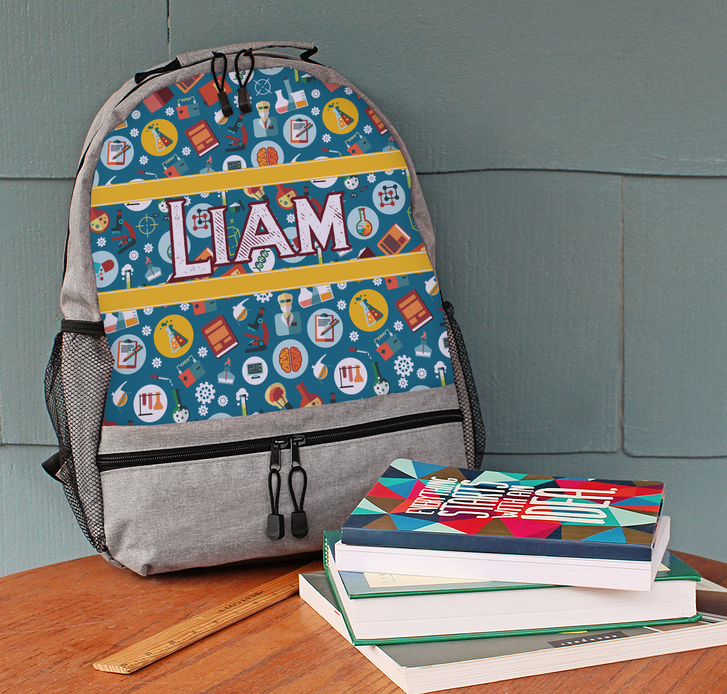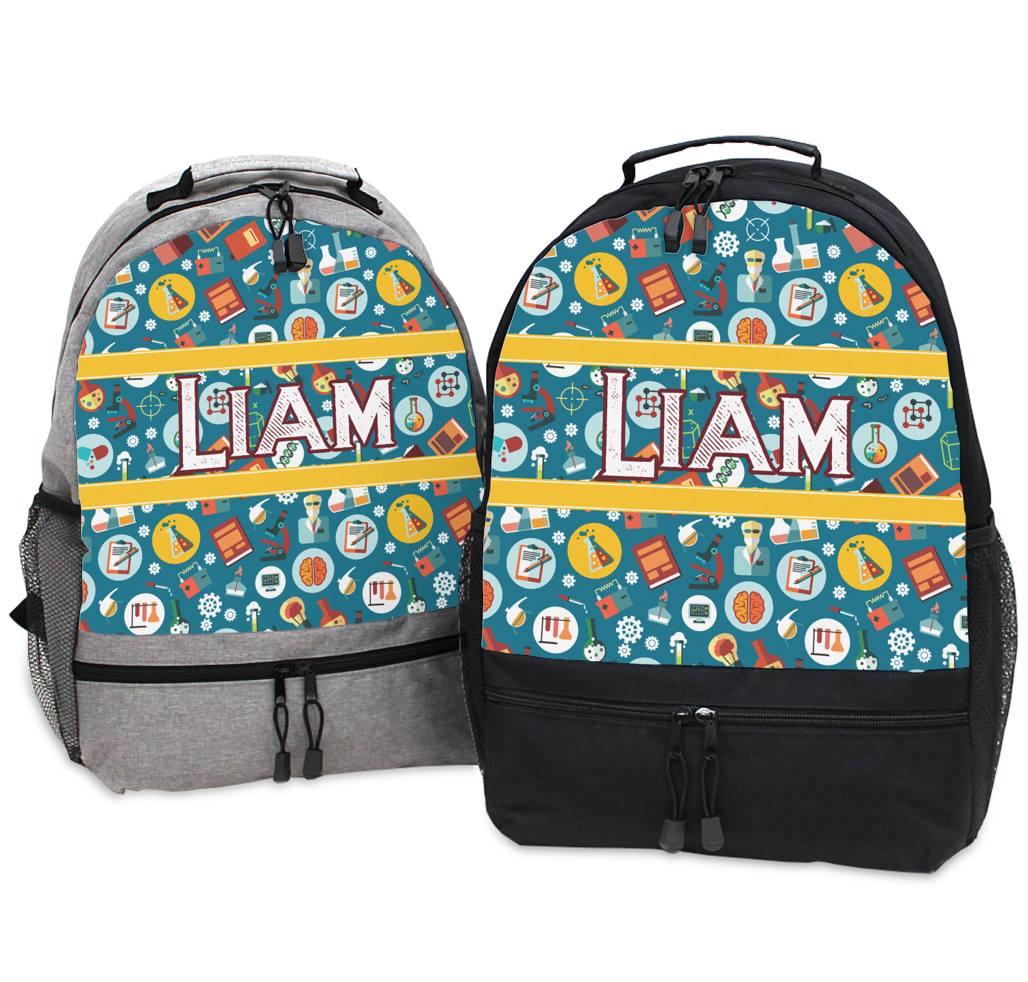 Filled with test tubes, beakers, books, gears, and more, this design is filled with a conglomeration of science graphics. The dark blue background really helps the brightly colored graphics to pop. You will find oranges, yellows, blues, greens and more throughout this design.