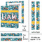 Filled with test tubes, beakers, books, gears, and more, this design is filled with a conglomeration of science graphics. The dark blue background really helps the brightly colored graphics to pop. You will find oranges, yellows, blues, greens and more throughout this design.