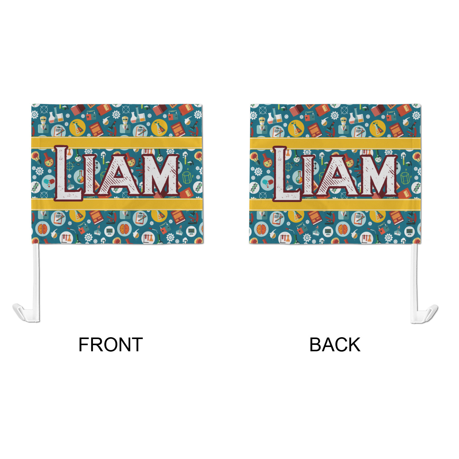 Our personalized flags are made from a durable, yet lightweight cloth that will proudly bear your logo or design of choice, while withstanding the outside elements. We have two size options - 8" x 11" and 11" x 15". Both come with a flag pole which includes a clip that secures the pole to the side window, whether it is rolled up or down. The flags are printed on both sides to display your design from all directions.