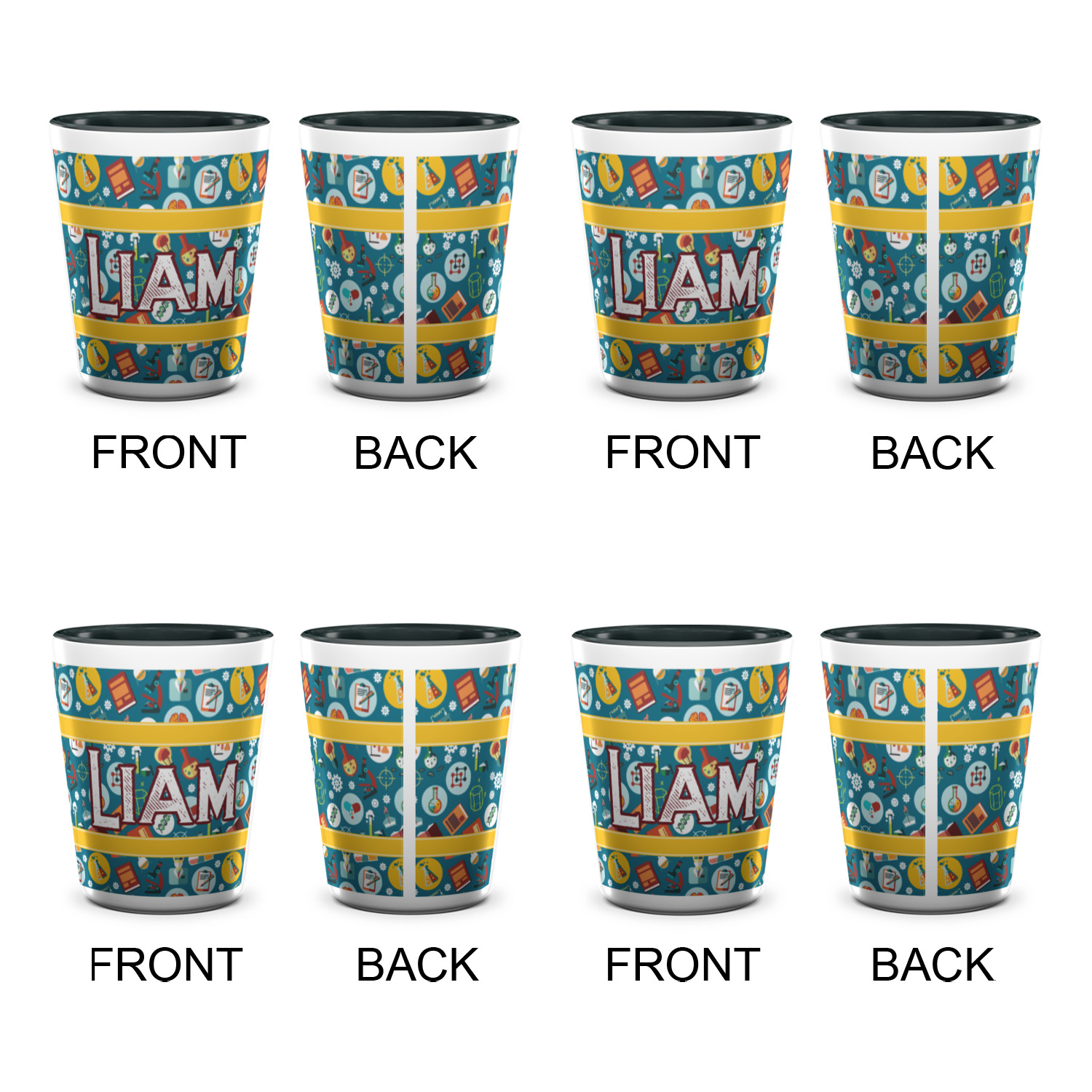 Made from ceramic these shot glasses are printed in full color with the design of your choice. These are a standard 1.5oz size and stand 2.25" tall. Available in a full white ceramic or a two-tone with a black color inside the shot glass. Buy a single or a set of 4, all of which can be designed separately to get you just what you want and need.