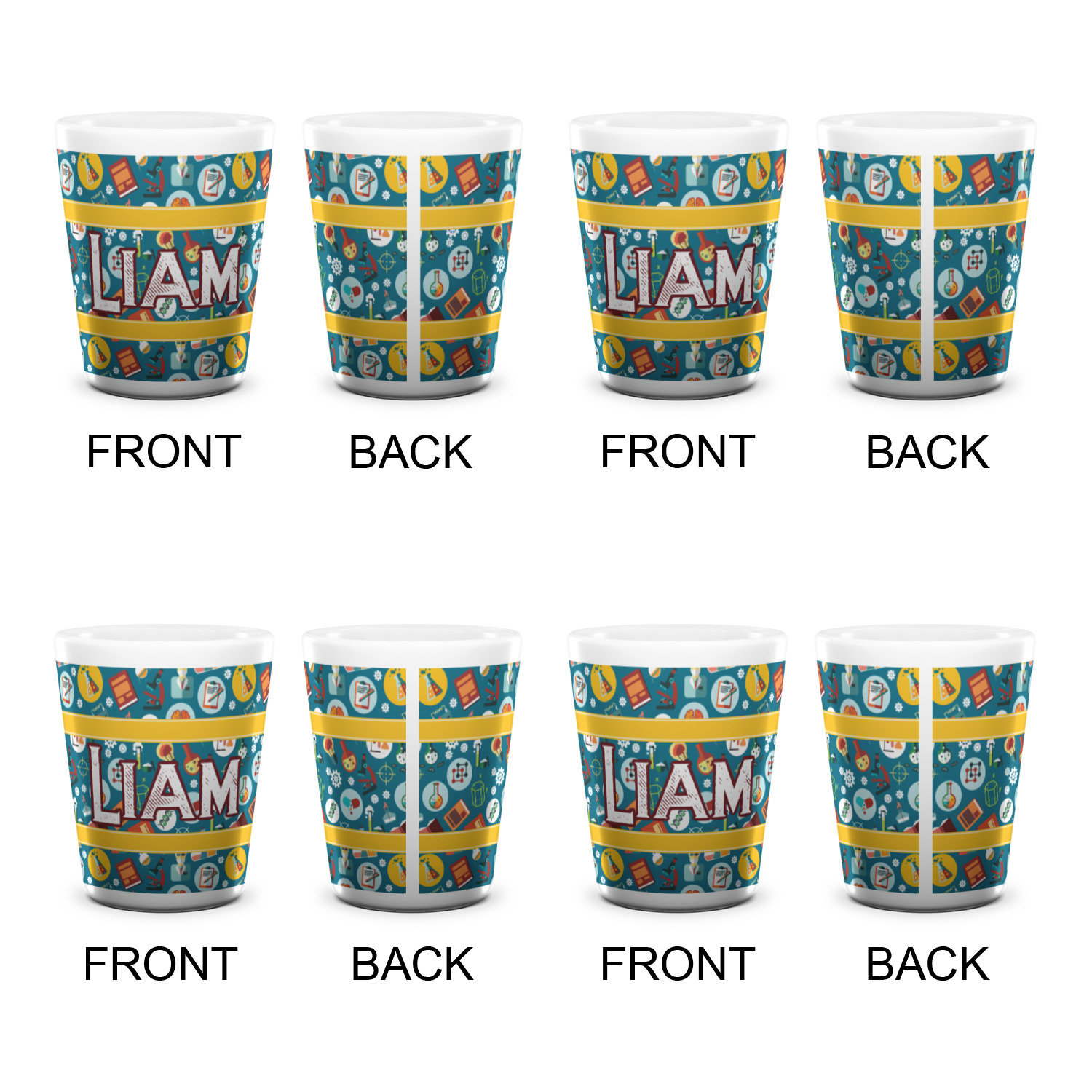 Made from ceramic these shot glasses are printed in full color with the design of your choice. These are a standard 1.5oz size and stand 2.25" tall. Available in a full white ceramic or a two-tone with a black color inside the shot glass. Buy a single or a set of 4, all of which can be designed separately to get you just what you want and need.