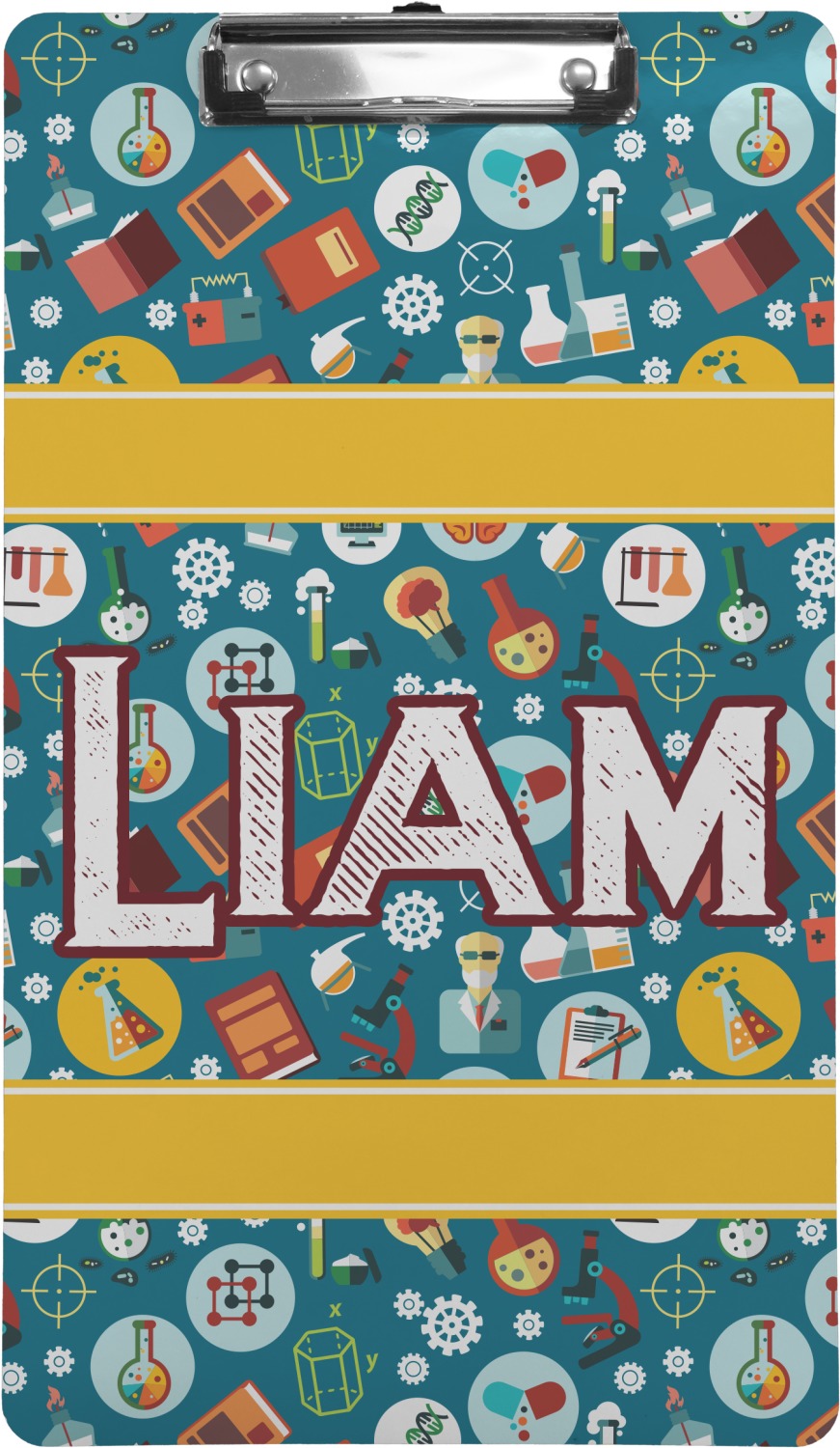 These custom clipboards are made from a strong hardboard and are coated with a glossy finish that accentuates the colors of your design. Alongside a retractable hook at its top, these decorative clipboards also feature sturdy clips to secure several sheets of paper. We sell these clipboards in two separate sizes. Our letter size measures at 12.5" L x 9" W, while our legal clipboard is approximately 15.5" L x 9" W. On both models, your personalization is printed on both sides of this clipboard and can be customized individually.
