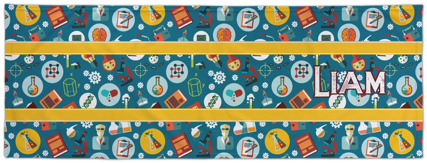 Filled with test tubes, beakers, books, gears, and more, this design is filled with a conglomeration of science graphics. The dark blue background really helps the brightly colored graphics to pop. You will find oranges, yellows, blues, greens and more throughout this design.