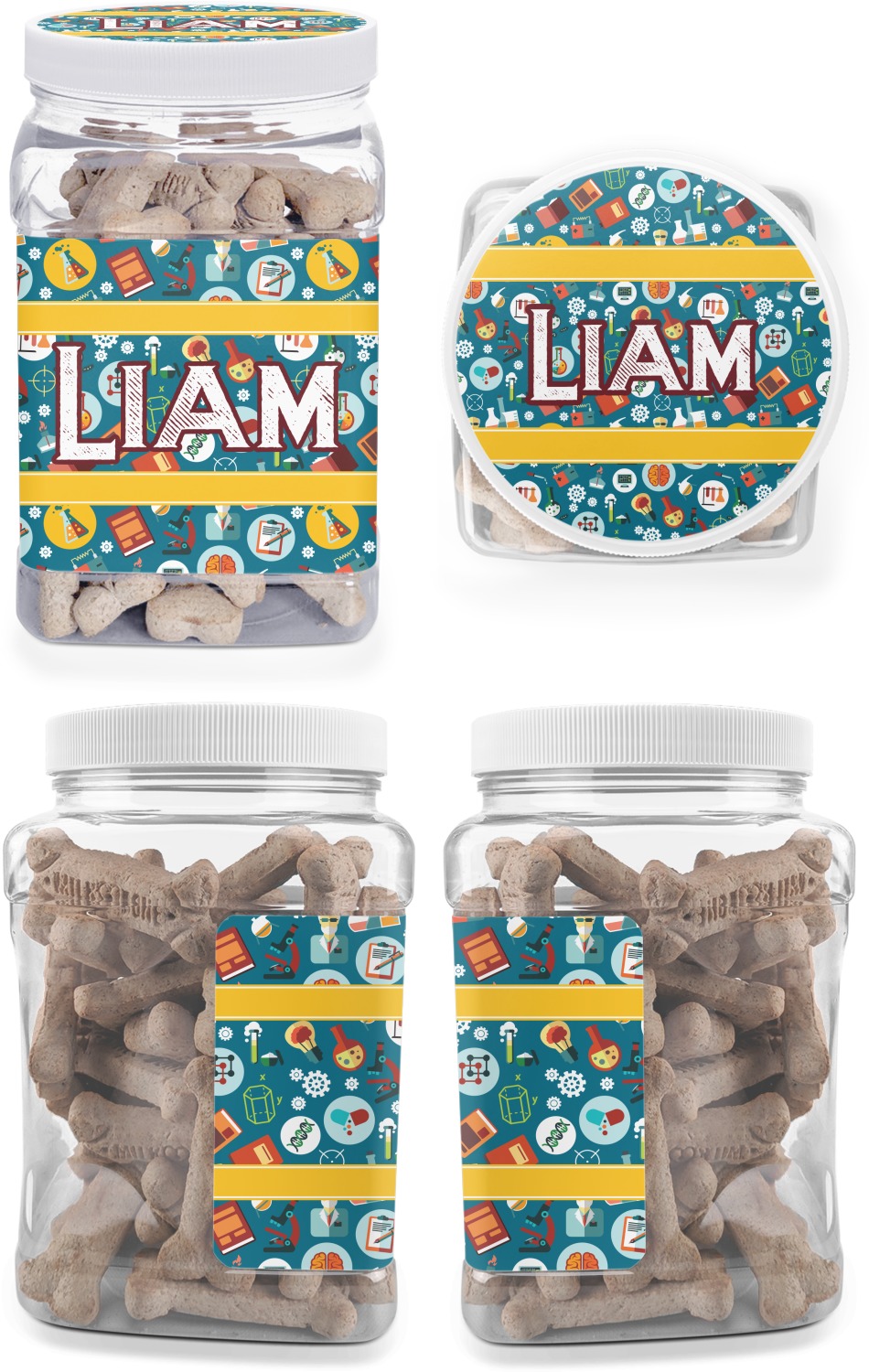 Spoil your pup with a brand new, personalized dog treat container! Your dog will be sure to wag his/her tail whenever he/she catches sight of it perched on your countertop!