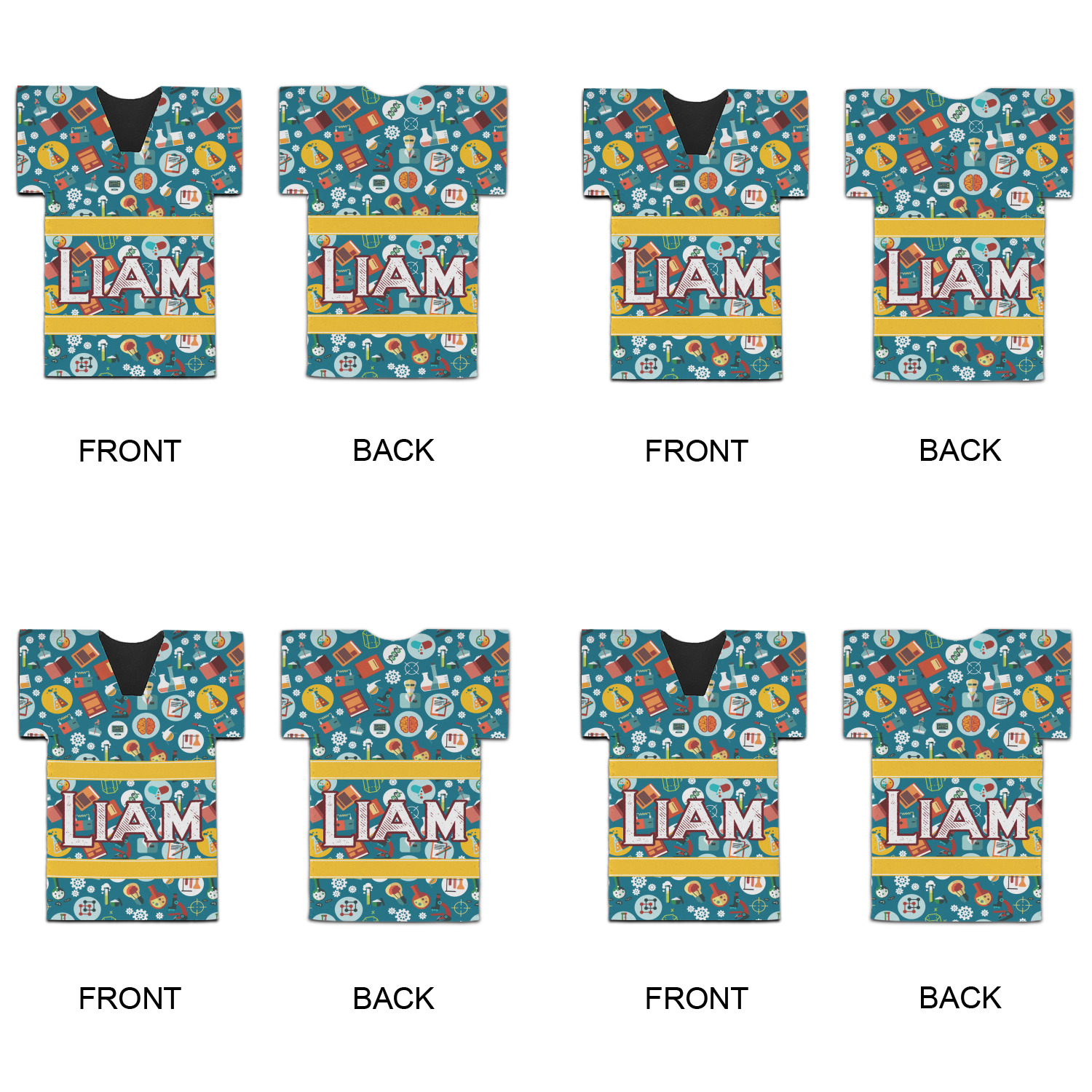 Filled with test tubes, beakers, books, gears, and more, this design is filled with a conglomeration of science graphics. The dark blue background really helps the brightly colored graphics to pop. You will find oranges, yellows, blues, greens and more throughout this design.