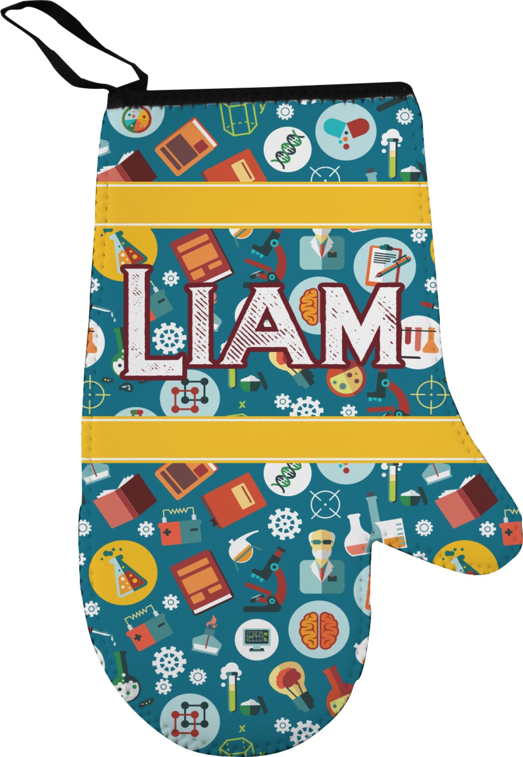 Our oven mitt gloves are made from a durable neoprene and feature a textured, rubberized surface on the palm's side for an easy grip. A strong stitch connects the neoprene and rubber, increasing the durability of this mitt. These oven gloves are spacious, and can accommodate both small and large hands. A thin, black loop is attached to the mitt's top, which can be used to hang and store the mitt. Your customization is displayed across the entire front of the neoprene surface. We sell both left and right hand models of these, separately.