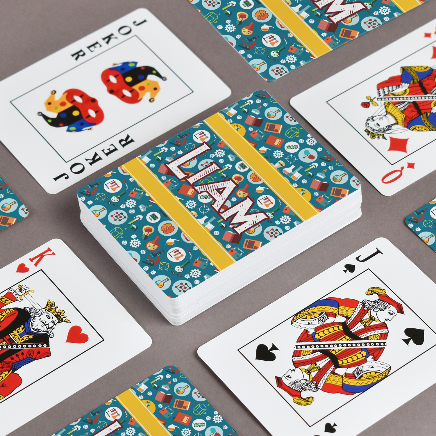 Our playing cards are perfect for family game nights or poker nights. A deck of customized playing cards ups the level of fun & entertainment to your game or poker nights. Imagine playing cards customized to match the theme of your game room, or game night, or that special event, or occasion with gambling tables!