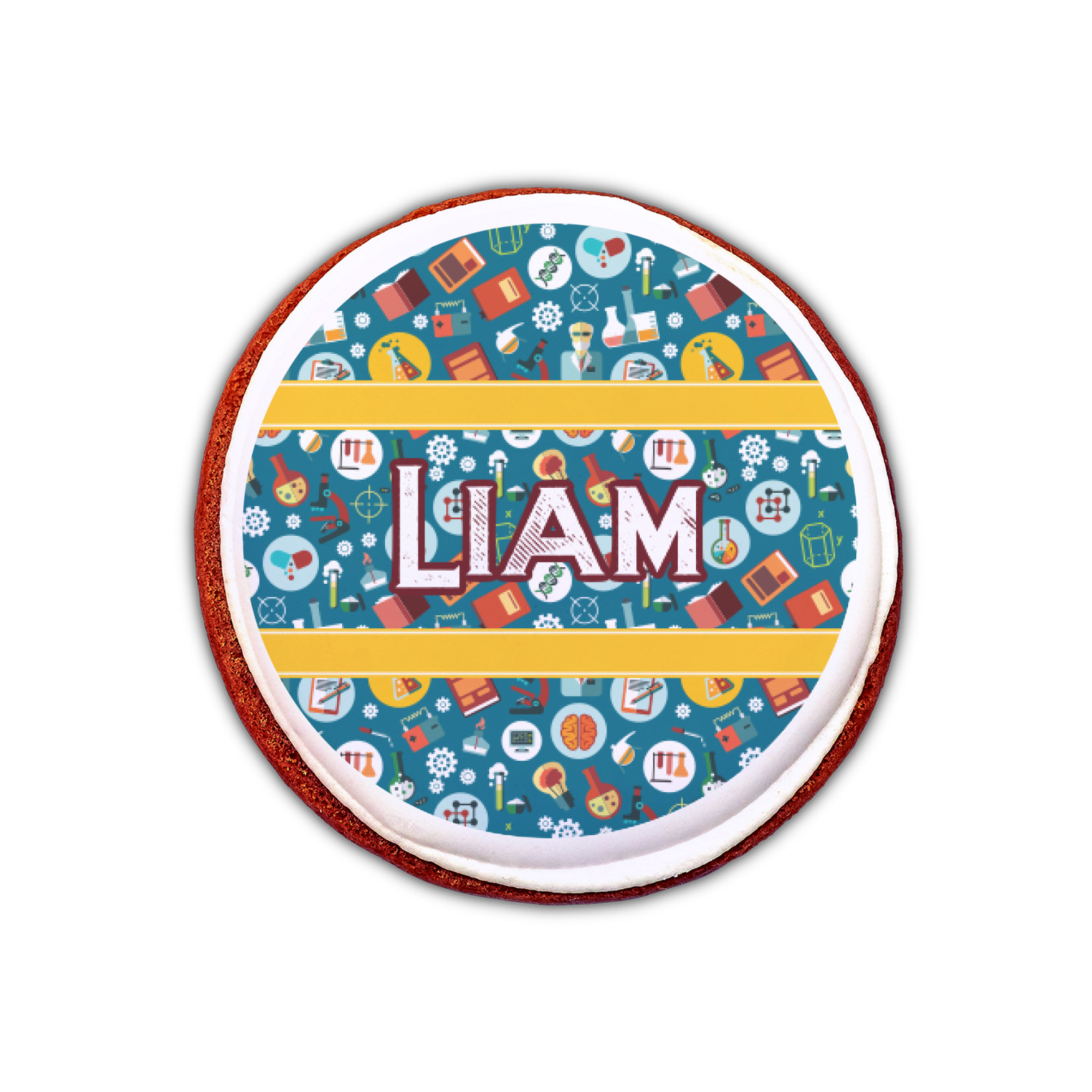 Your customized cookie toppers can be placed on top of any dessert with an icing top.The icing helps adhere the cookie topper to the dessert.
