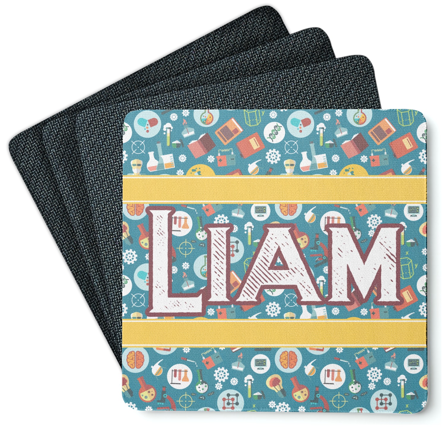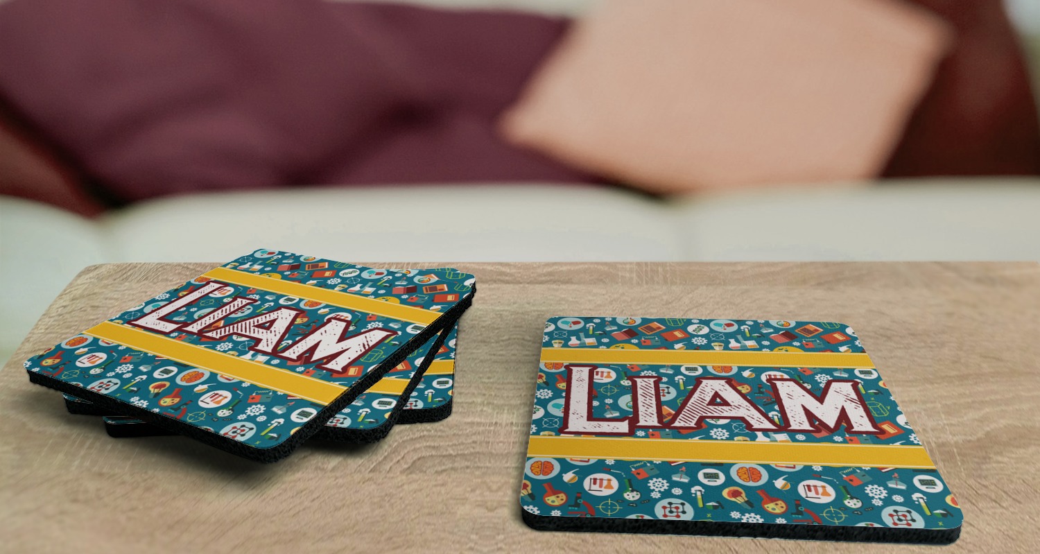 Replace your boring, run-of-the-mill coasters with a set of 4 personalized coasters! When personalized, these coasters will protect your beloved surfaces while adding to your home's decor! Thanks to your coasters bright colors and unique design, your guests will be eager to use them!