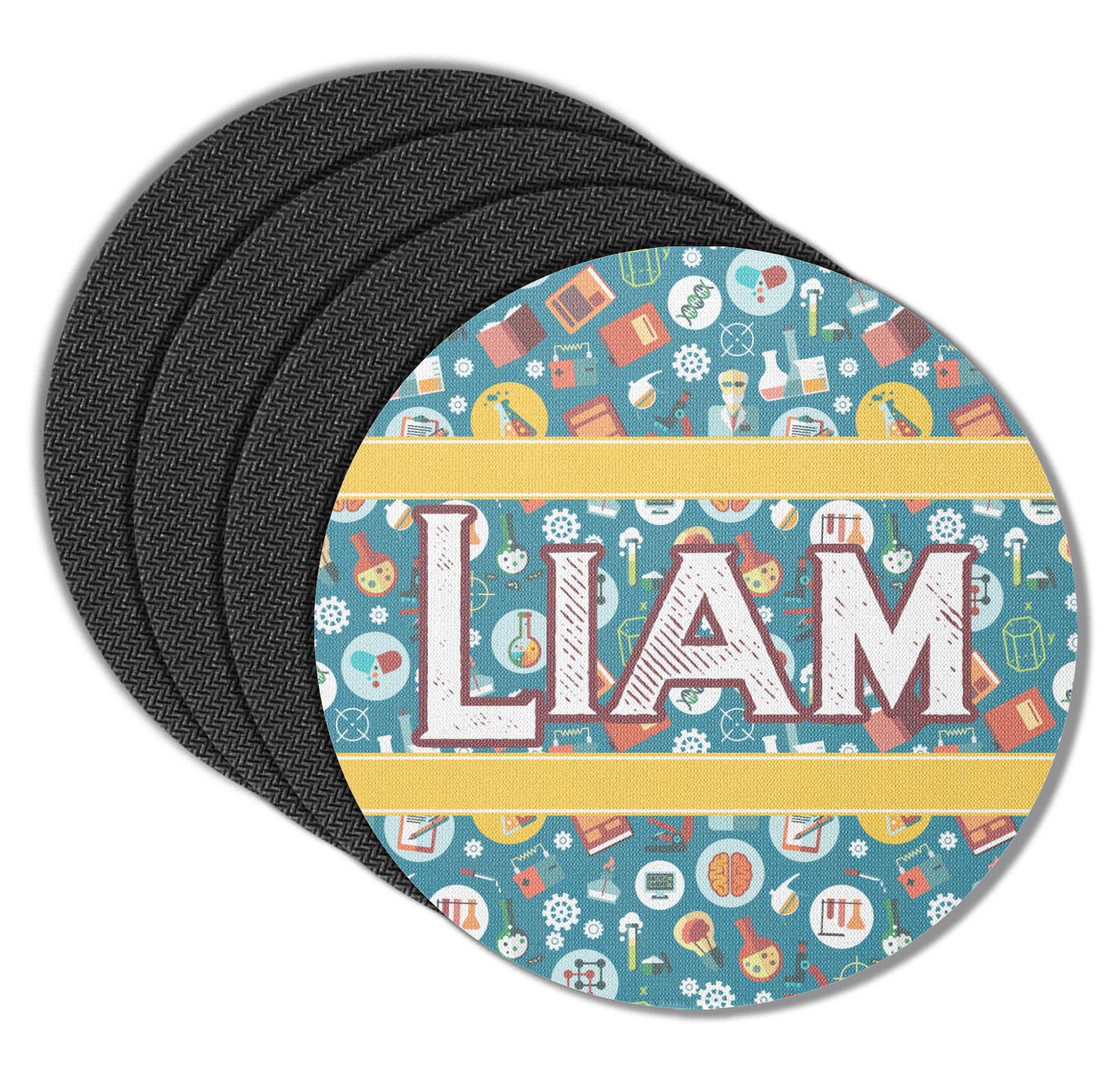 These drink coasters have a smooth, polyester top and a textured, rubber backing on its bottom. The non-slip rubber backing underneath works to keep any spills at bay. At 4 by 4 by 0.25 inches thick, these custom coasters are a suitable size for most drinkware. Your personalization is displayed atop the face of the cup coaster. We sell these rubber coasters in two different shapes: square and round. You can buy each shape as singulars or as a set of 4.