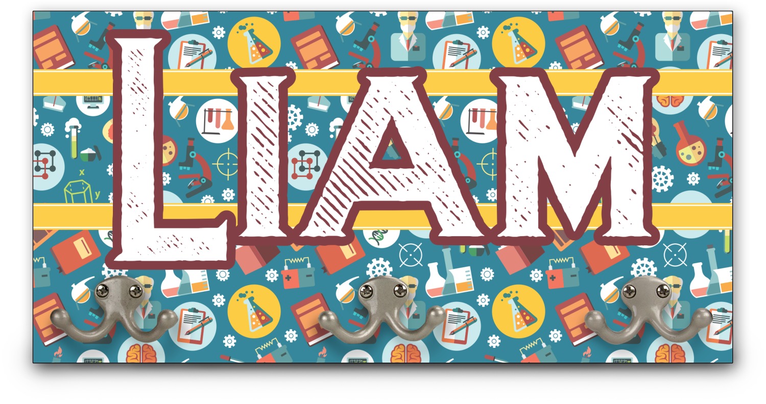 This coat rack is the perfect way to add some personality to your wall or entryway. The board is made of a strong maple that is approximately 16" x 8". The three 2-prong hooks are a sturdy metal that have three screws attaching them to the board. Your design is printed right onto the front of the board while the back and sides are a simple black.