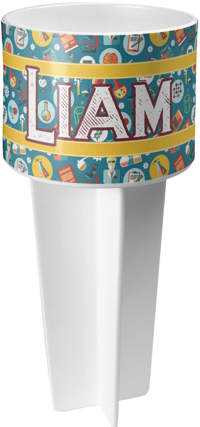 This cup holder has a large stake at its bottom that anchors it to the sand or ground below, while the cup holder rests above the stake. The entire drink holder is made of durable plastic and displays your customization around the cup holder portion. We sell these personalized beach spikers in two different colors: black and white.