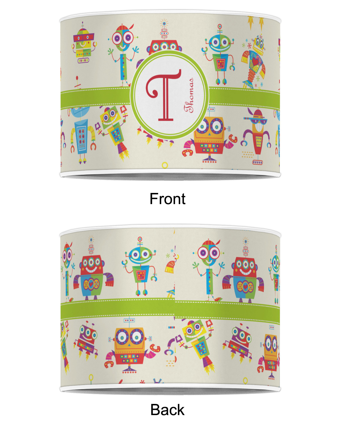 Our customized lamp shades also come in 3 different sizes: 8", 12" and 16", measuring at 8" in diameter by 6" tall, 12" in diameter by 8" tall, and 16" in diameter by 10" tall, respectively.