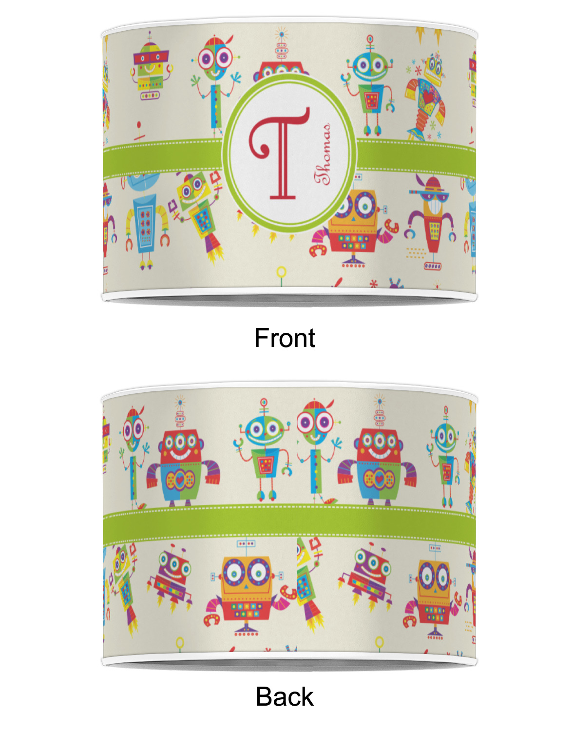 Our personalized drum lamp shades are available in 2 different materials: Poly-film or fabric. Poly-film lamp shades come with the option of white or black border trims to best match your customized design. Fabric lamp shades are finished with a rolled edge for a clean modern look.