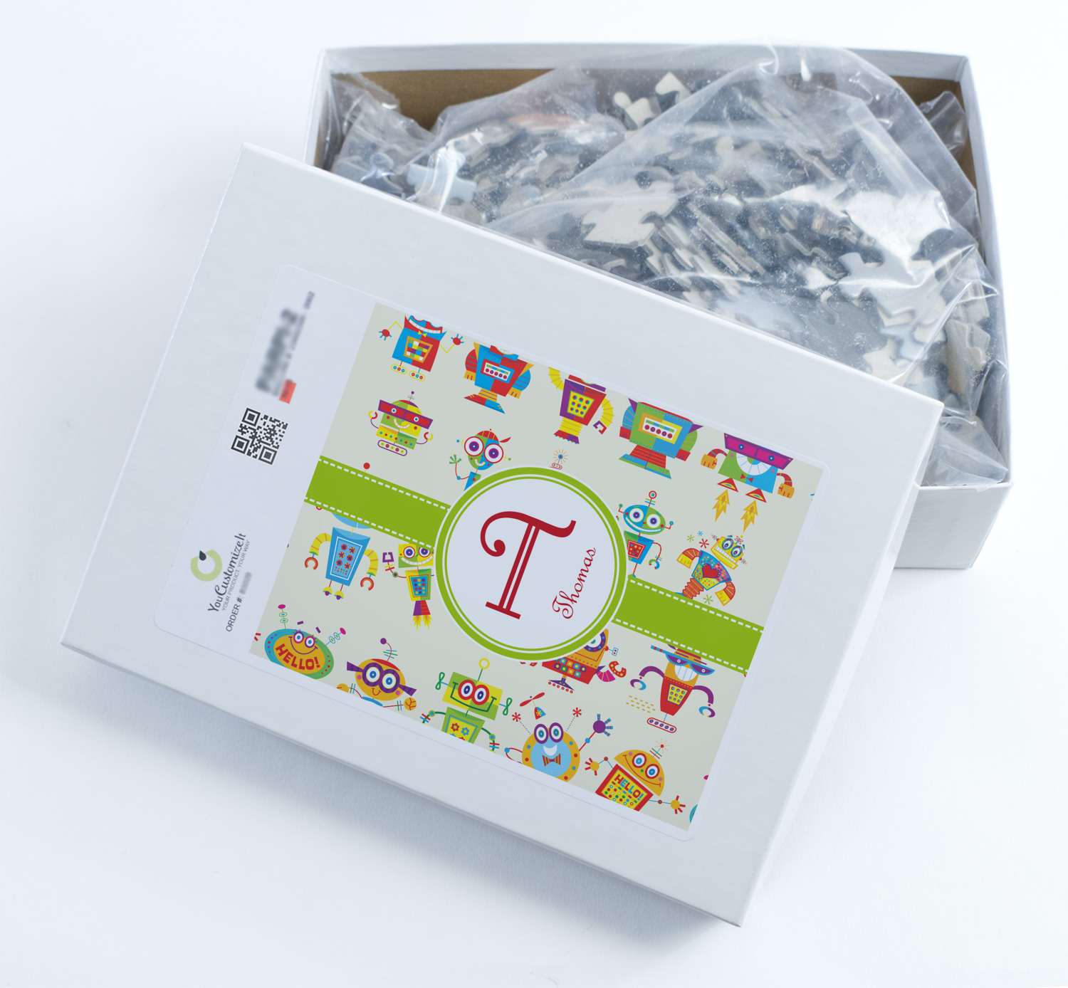 You can also upload your logo or art that you or your kids drew. To create more challenging jigsaw puzzles, you can create a pattern from with your logo or artwork. You can also add other elements such as text or personalization.