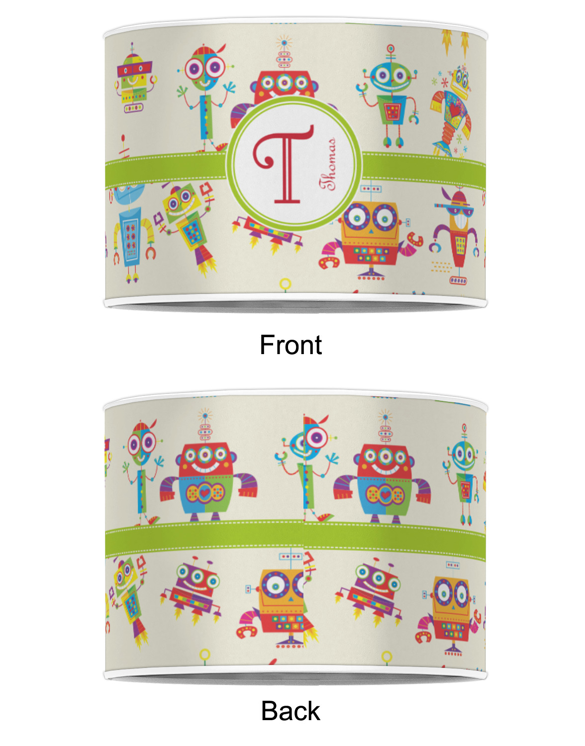 Our customized lamp shades also come in 3 different sizes: 8", 12" and 16", measuring at 8" in diameter by 6" tall, 12" in diameter by 8" tall, and 16" in diameter by 10" tall, respectively.