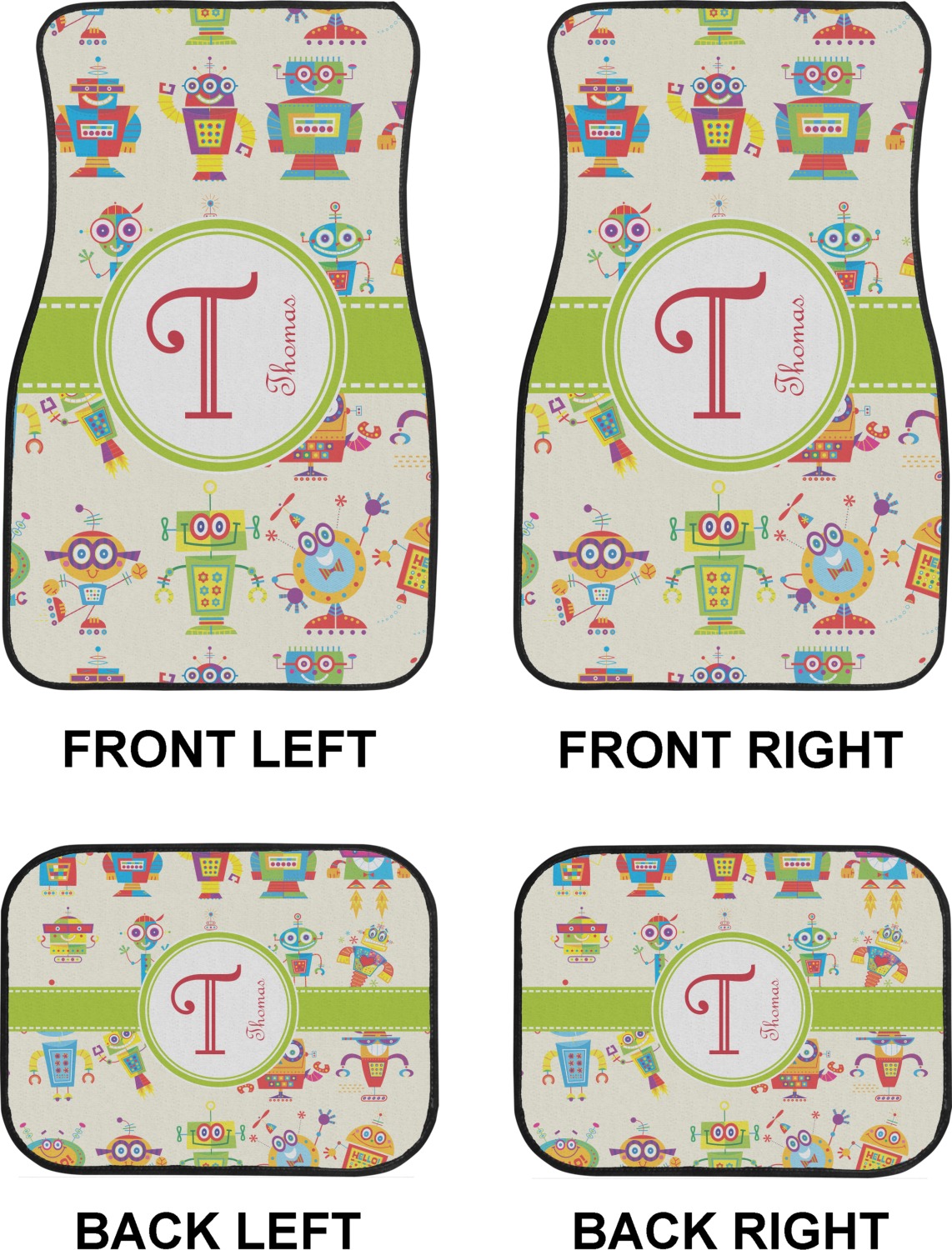 We craft our auto floor mats mats from polyester, apply a black finish to the edges, and lined at the bottom to prevent slippage. These mats protect your floors from grass, mud, and any accidental spills. We display your personalized design on the front face of each mat. The sizes of these car floor liners are standardized to provide a versatile fit for all vehicles. The front rows car mats measure at 17 by 26.5 inches, while the back rows measure at 17 by 13 inches. We sell three packages of car floor mats. You can purchase a pair of front row car mats, a pair of back row car mats, or a set of front row and back row car mats. To make an informed purchase, we recommend measuring the surface area of your car floors.