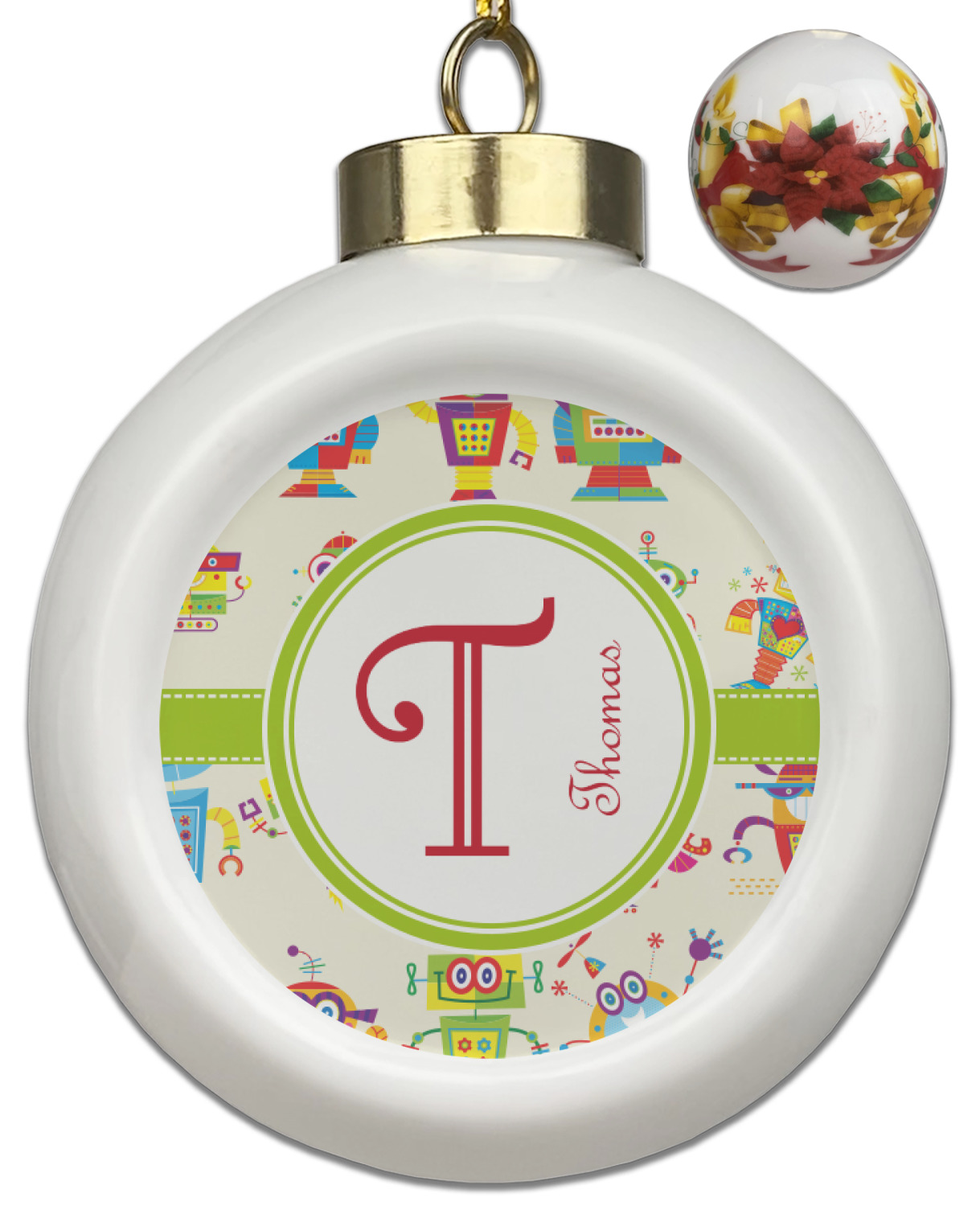Our Christmas ornaments are a unique ceramic ball shape with a twist as it has a flat face to display your custom design! Select from one of our two design types - Christmas Tree or Poinsettia Garland - to adorn the curved back of your personal design. Each ornament measures 3H x 2.5W x 2D accompanied with a gold string accent for finishing touches to hang on your beautiful Christmas tree!