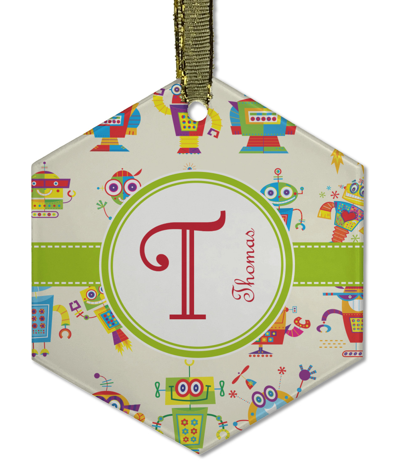 Each of our flat glass ornaments come with a gold string to hang on your Christmas tree with style! We offer two different shapes - flat, round ball or a hexagon. Both glass ornaments have a frosted coating on one side where we print your design while the other side is a clear gloss to give your personalized ornament a sheen finish. Our flat round glass ornament is approximately 3.5" x 3.5" while the flat hexagon ornaments are approximately 3.5" x 3".