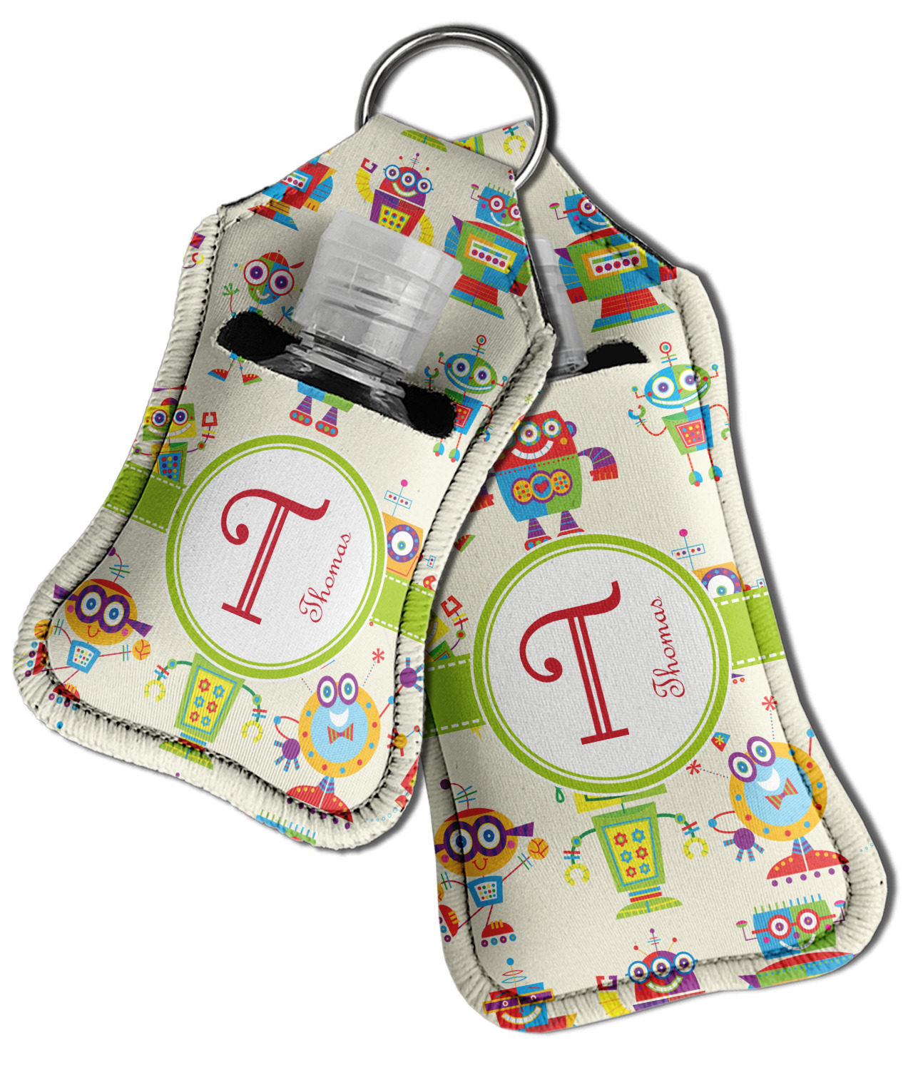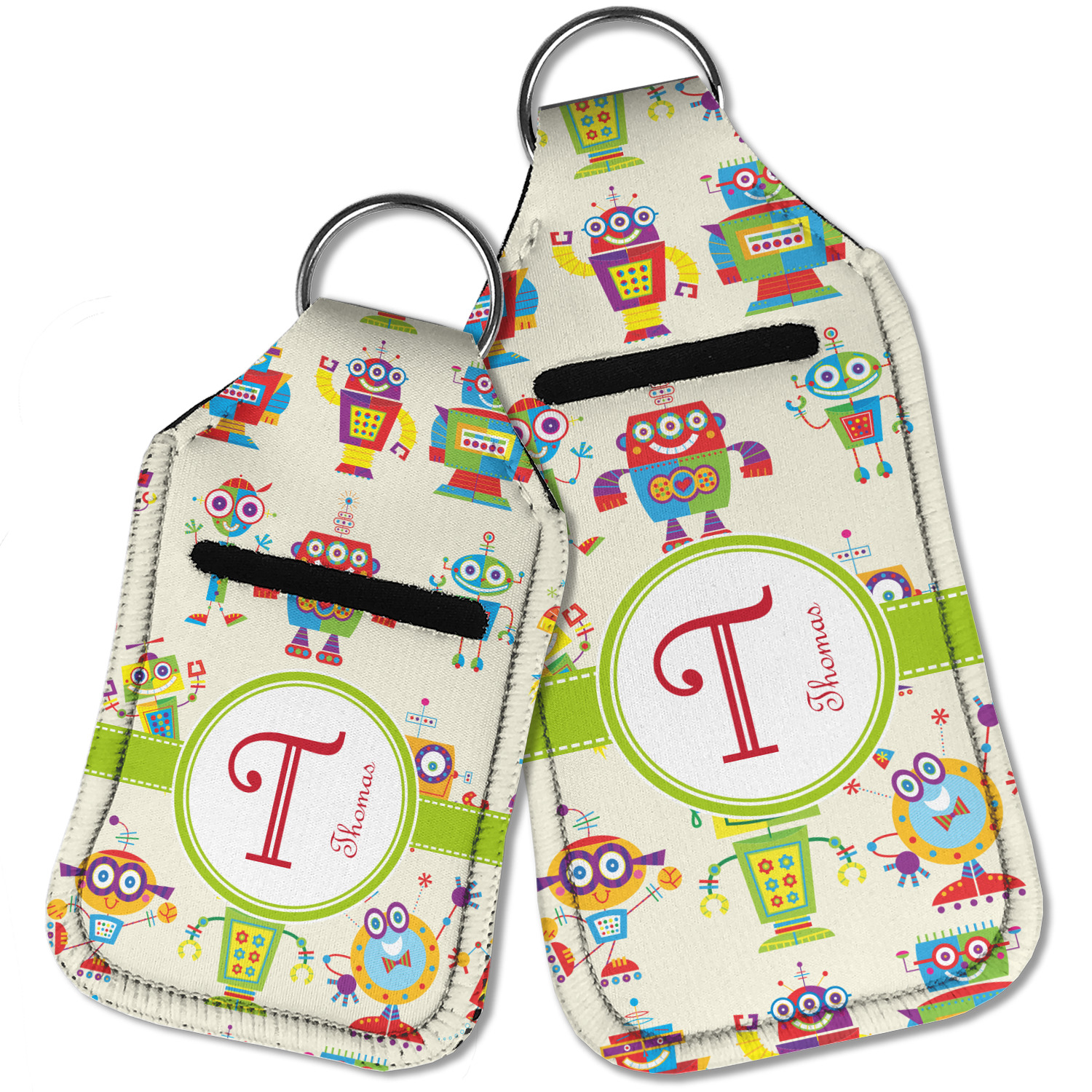 Each hand sanitizer holder comes with its own empty travel-sized, refillable hand sanitizer sure to fit snug in your customized sanitizer case! Our hand sanitizer cases are a durable, yet soft neoprene material sure to last any daily activities or travel agenda. Customize and personalize a hand sanitizer bottle holder with one of our two sizes - small (4.25" x 2.25") or large (5.5" x 2.5"). Each travel sanitizer holder comes with a keyring for attachment on bags, keys, or more!