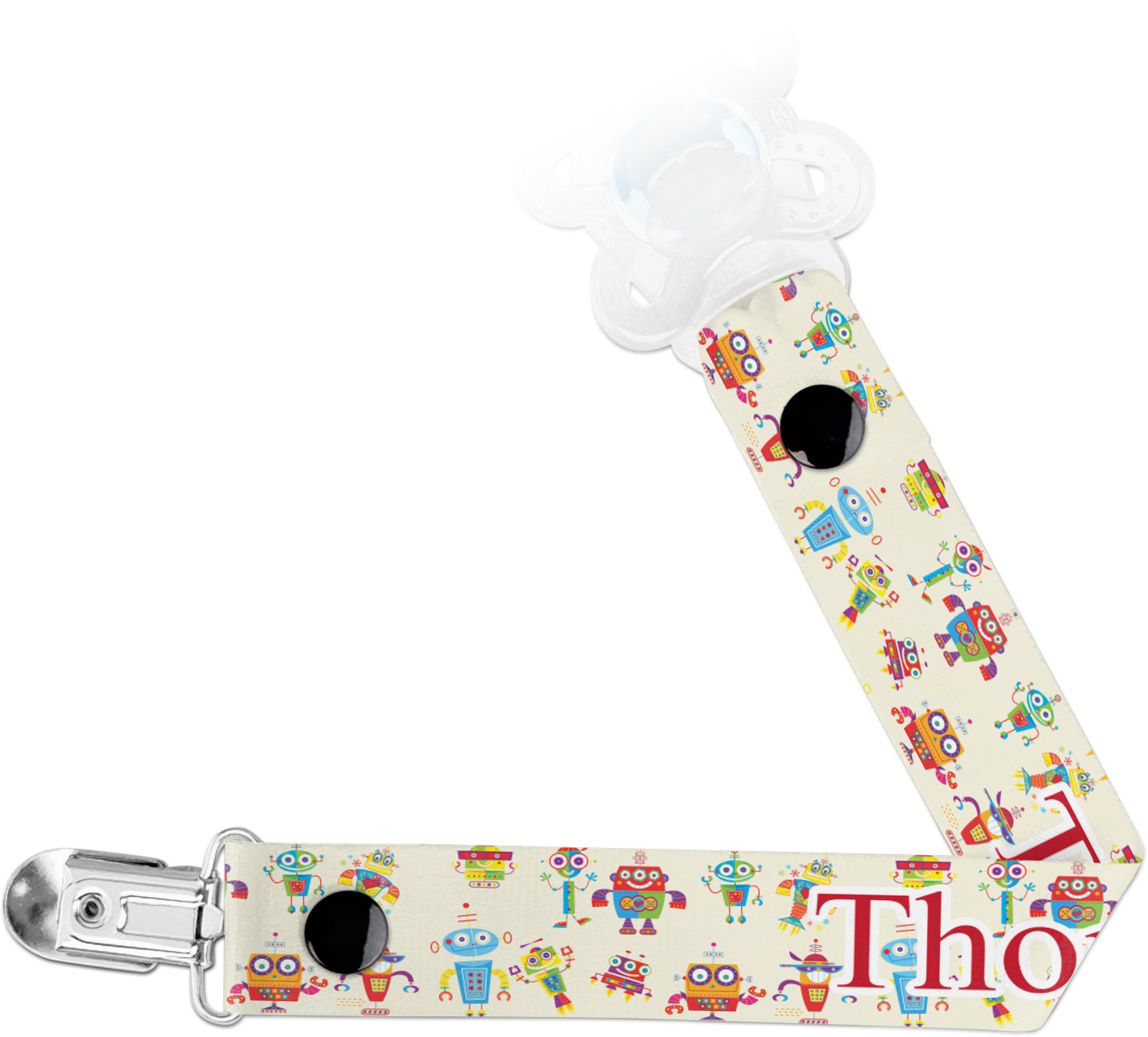 This personalized pacifier clip is the ideal size and measures at approximately 7.5 inches in length, when either end is snapped closed. On one end, you'll find a snap button. This button of your baby's pacifier holder is what can be attached to their pacifier to hold is securely in place. Simply open the snap, slip it through the pacifier opening, and snap it back into place. On the opposite end of this baby pacifier holder, you'll find a metal clip that can secure to a baby's collar or sleeve. This clip ensures that the strap stays in place, and that your baby's pacifier is always on hand.