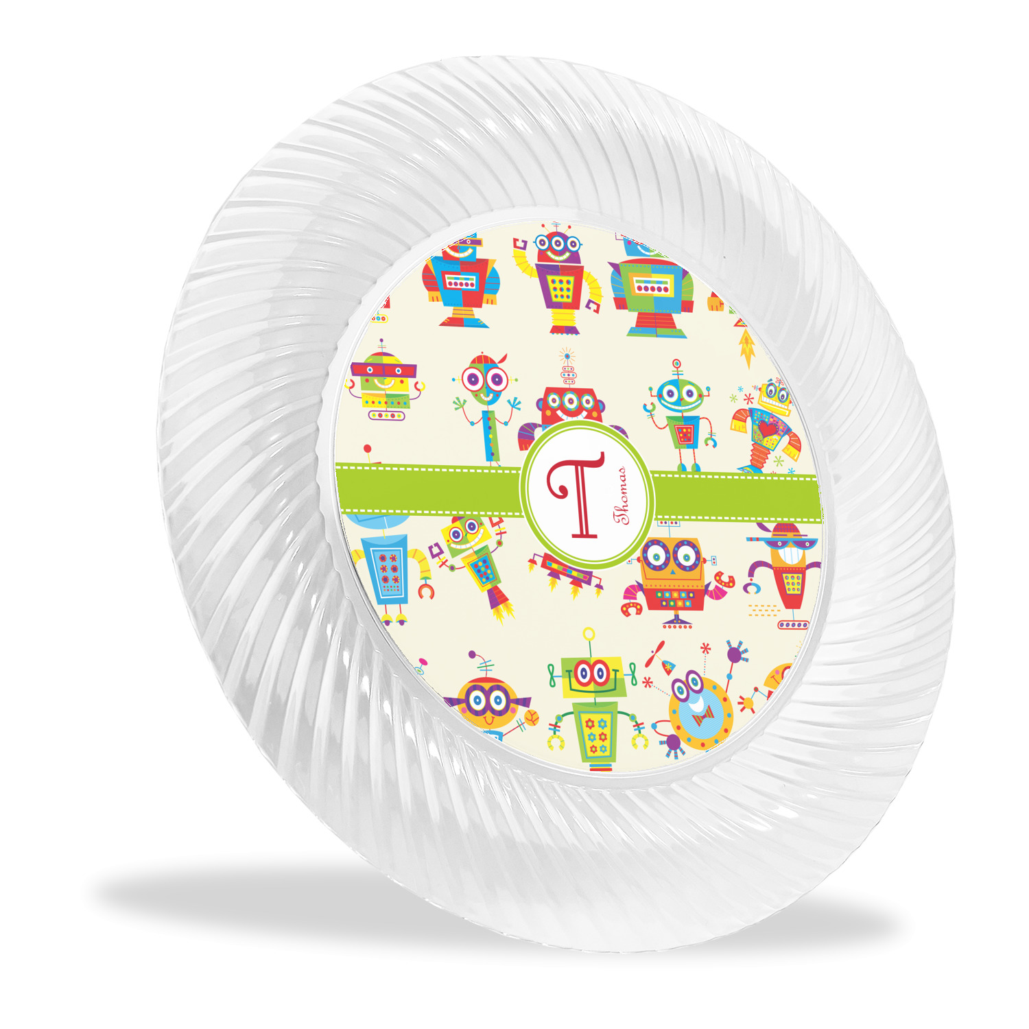 Made from a beautiful clear plastic plate as a base, your design is printed to the underside of the plate. The outside of these disposable plates has a classic swirl texture to it for a high quality look and feel.