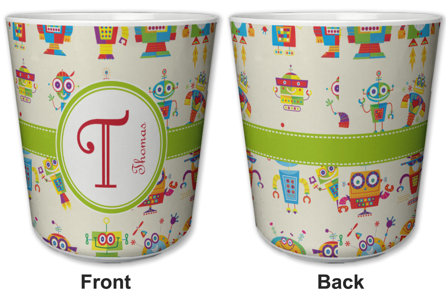 Made from a durable plastic, these tumbler cups are strong enough to withstand daily use and are perfect for young children. Each of these personalized plastic cups holds 6 ounces and measure at approximately 3" x 3" x 3.25". Place them in the bathroom as a rinsing cup, or give them to your kids during mealtimes. These 6 oz. plastic cups are BPA free, microwave and dishwasher safe, for your convenience. Your personalized design is displayed across the entire outside of this cup, while the inside is white in color to make your customization really stand out.