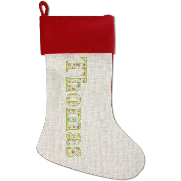Our classic red stockings are made from a soft, yet durable polyester material perfect for any stocking stuffer! The front of our Christmas stockings have a linen front that boldly displays your custom design accented with a lush red cuff resting all around the stocking. Each stocking is approximately 18x12 with a durable cotton rope loop for hanging.