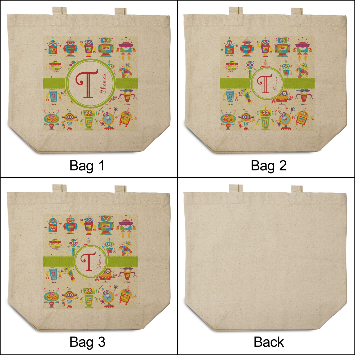 These cotton totes are washable and easy to care for, and they can be folded flat for storage. Your artwork, logo, or photo is printed in full color directly on the cotton tote in the front.