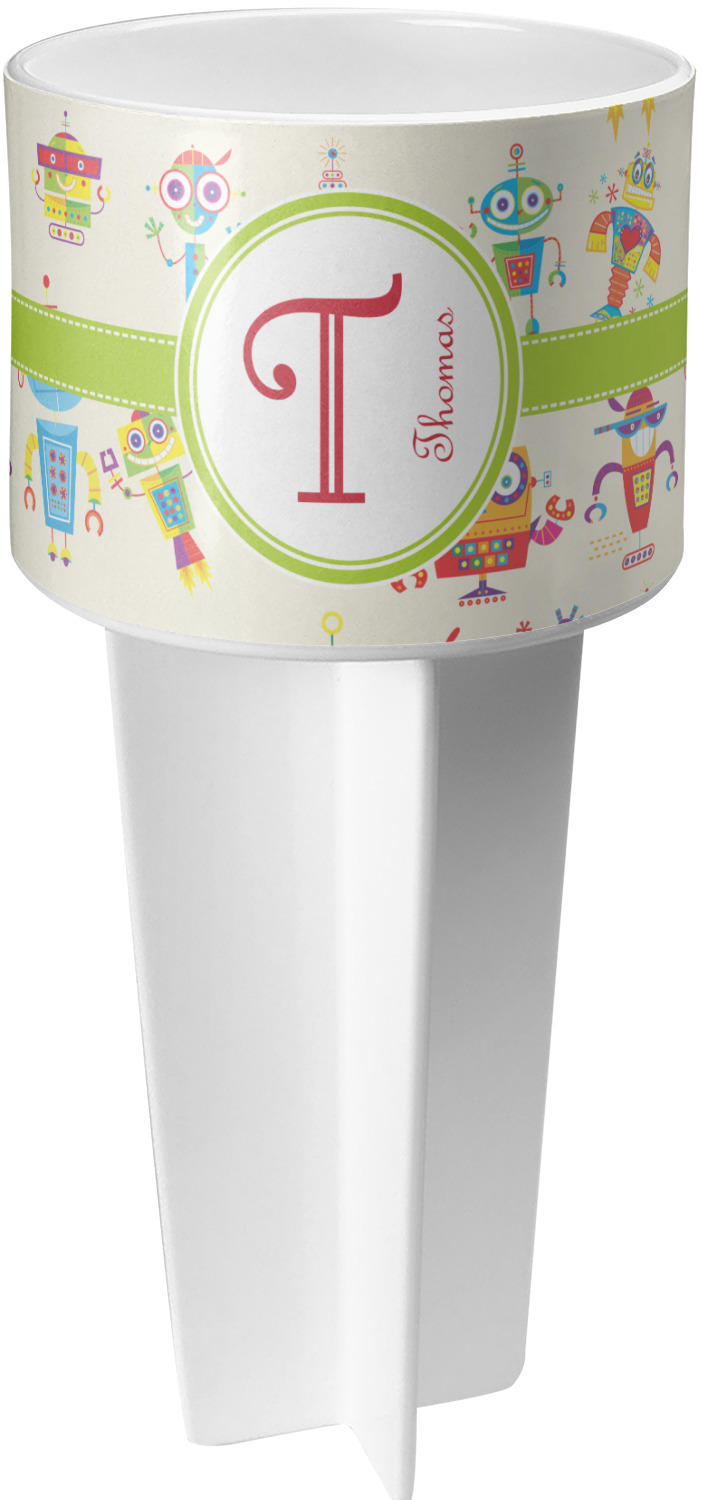 This cup holder has a large stake at its bottom that anchors it to the sand or ground below, while the cup holder rests above the stake. The entire drink holder is made of durable plastic and displays your customization around the cup holder portion. We sell these personalized beach spikers in two different colors: black and white.