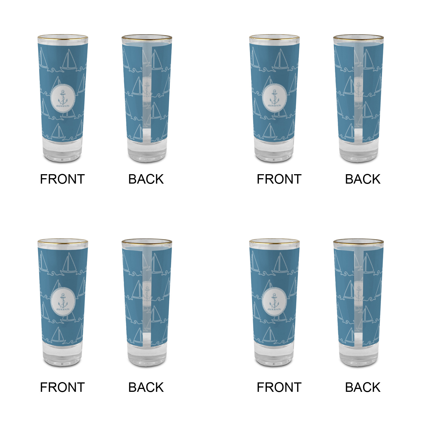 Sailboat Designs for 2 oz Shot Glasses - Glass with Gold Rim - Set of 4