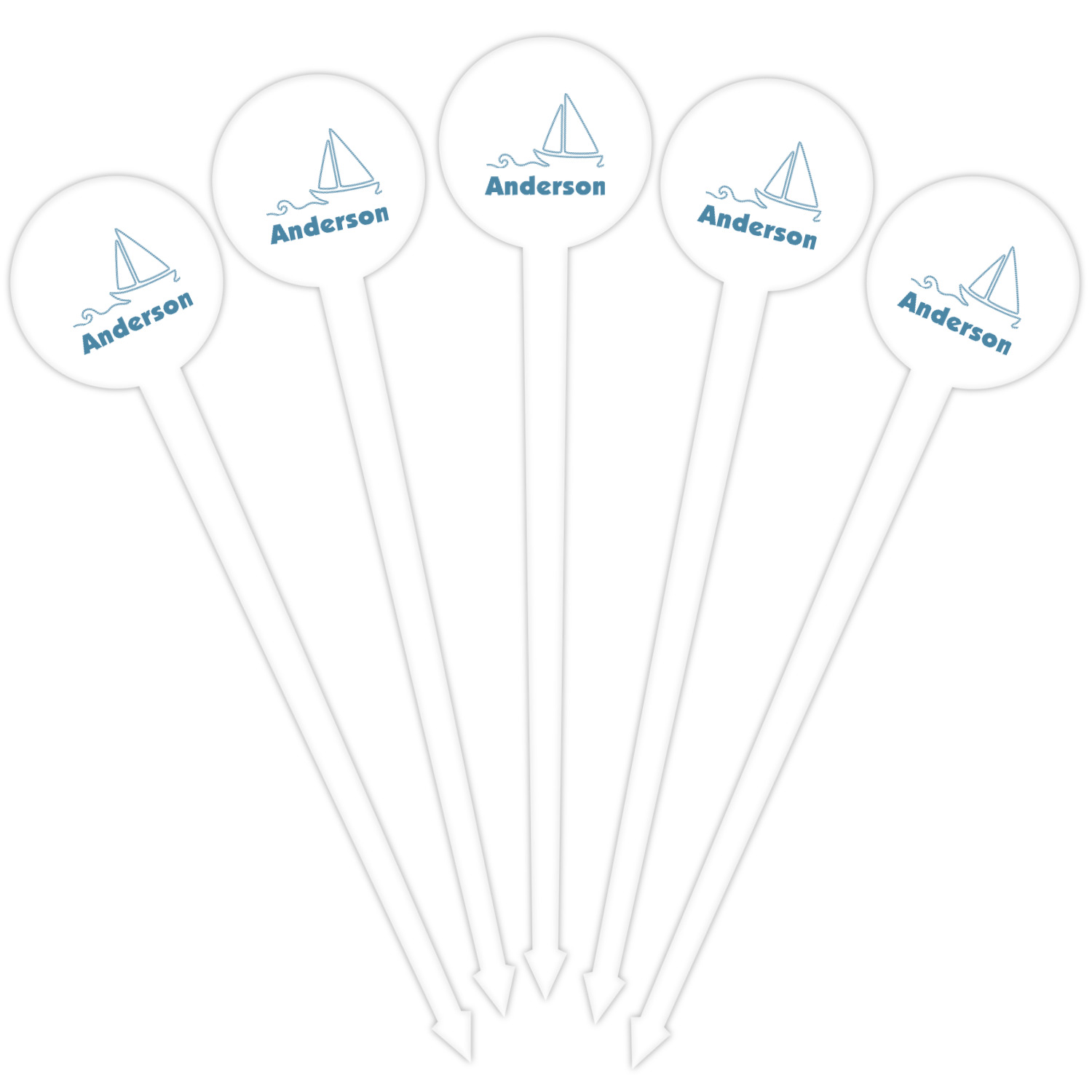 Sailboat Designs for 4" Round Plastic Food Picks - White - Single-Sided