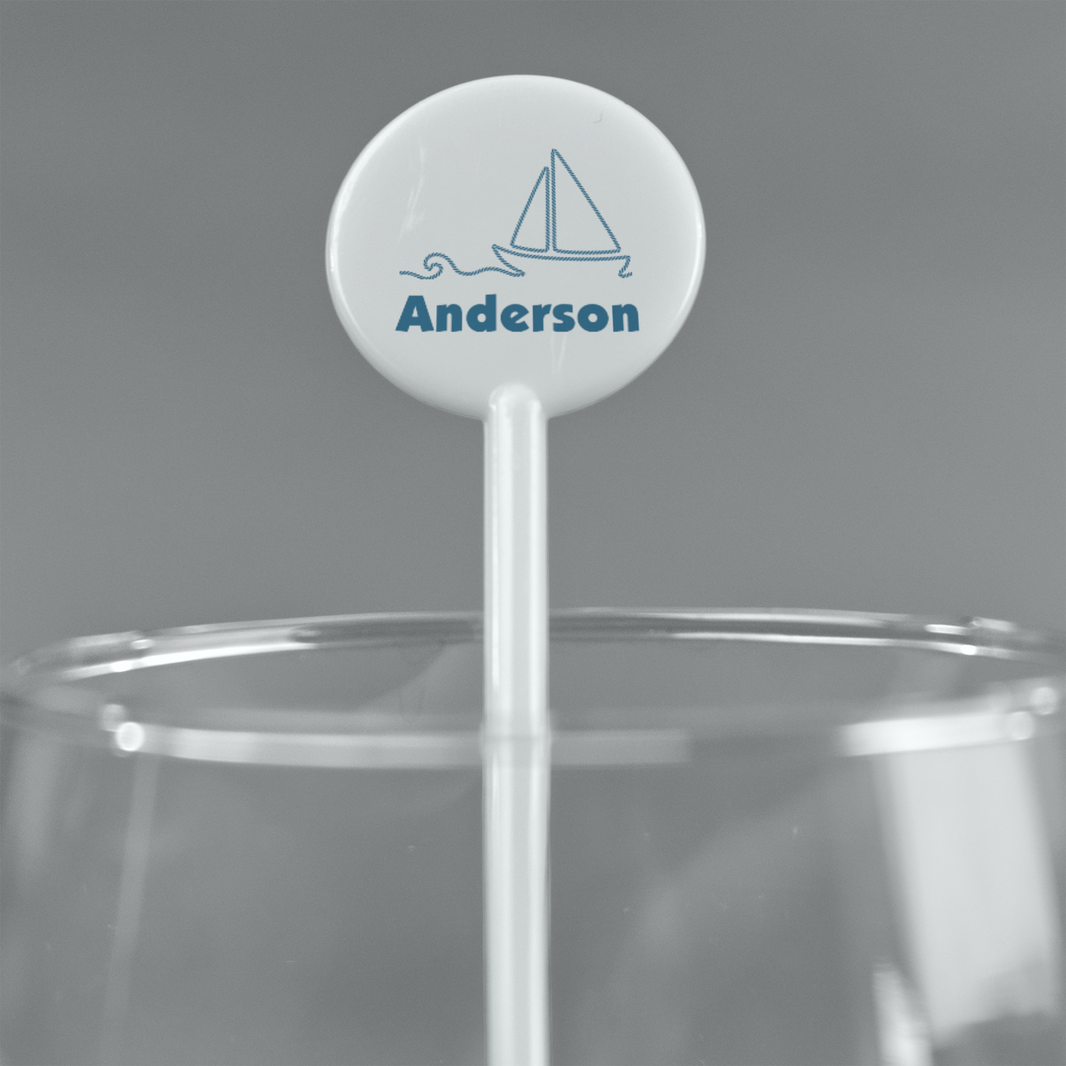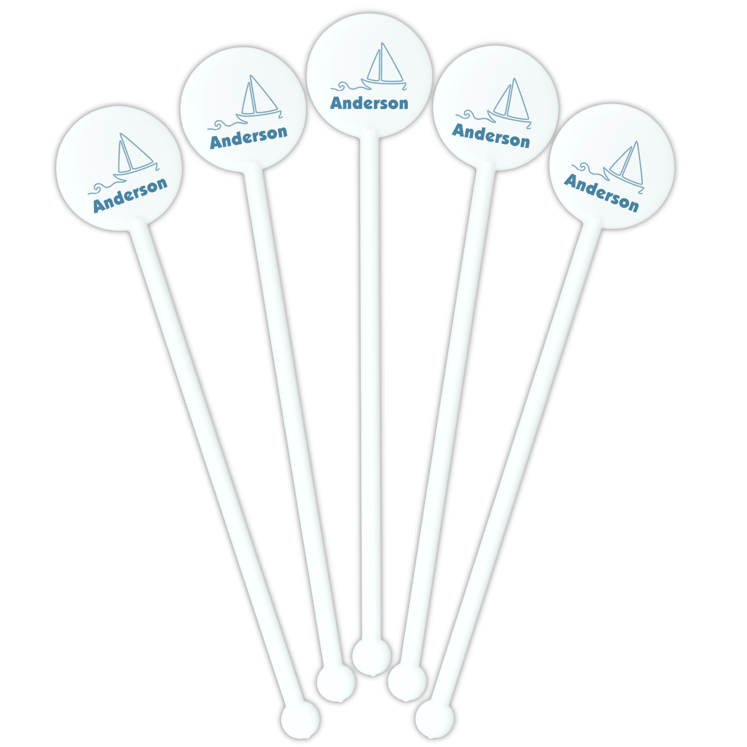 Sailboat Designs for 5.5" Round Plastic Stir Sticks - White - Single-Sided