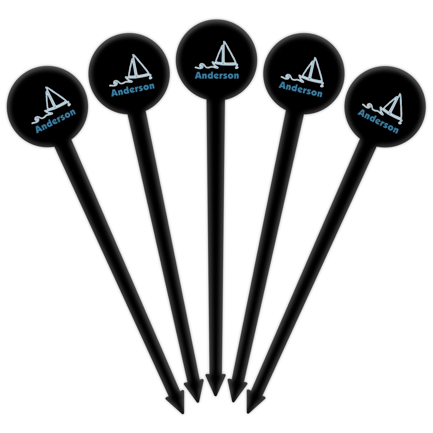 Sailboat Designs for 6" Round Plastic Food Picks - Black - Double-Sided