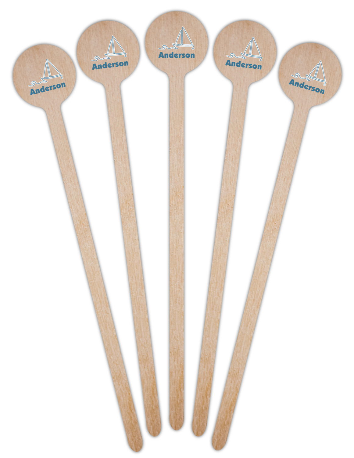 Sailboat Designs for 7.5" Round Wooden Stir Sticks - Single-Sided