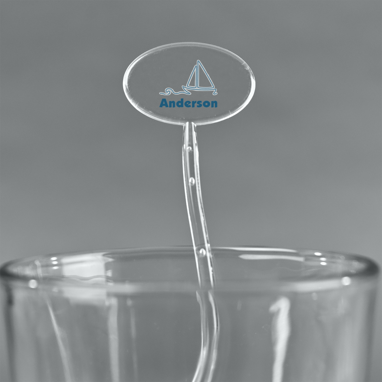 Sailboat Designs for 7" Oval Plastic Stir Sticks - Clear