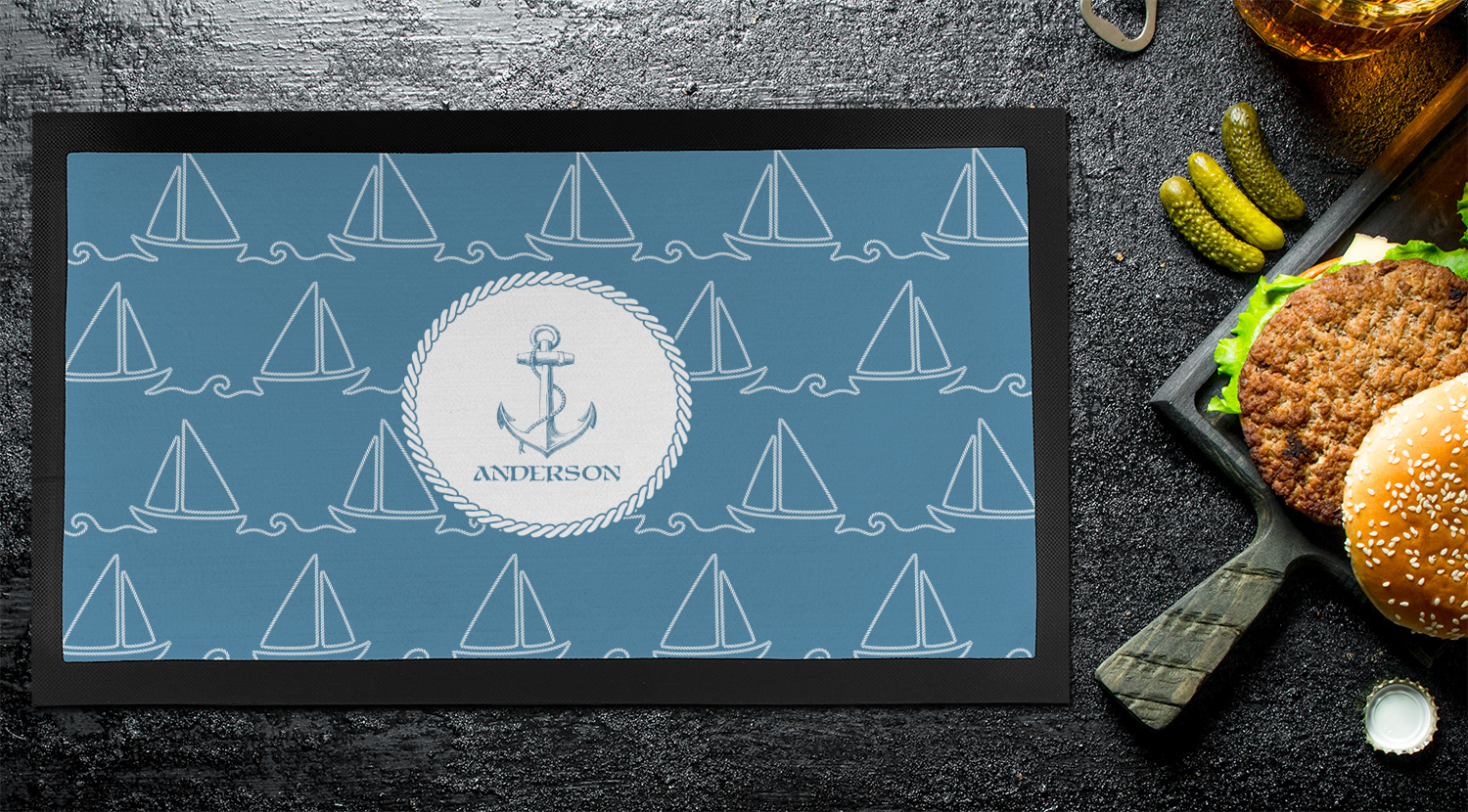 In the center of the design is a roped label and anchor. Put the personalization of your choice underneath.