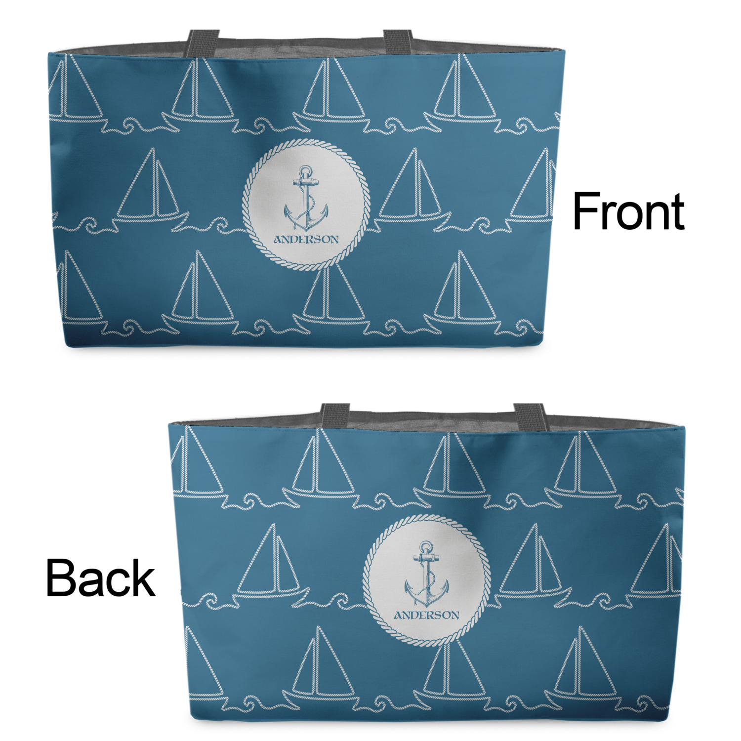 You can design the totes with a design on the front and another one on the back. The two designs can be identical or completely different. The choice is yours.