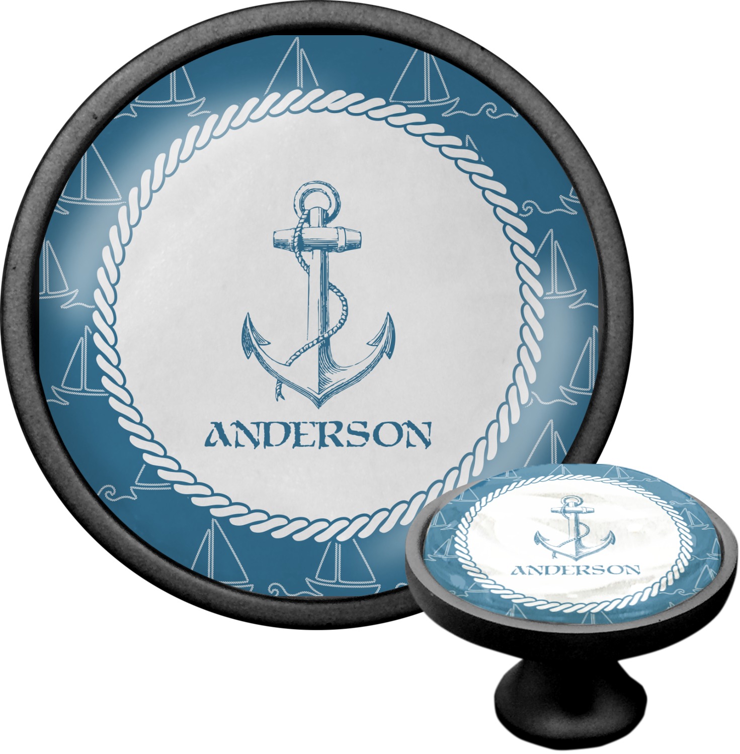 In the center of the design is a roped label and anchor. Put the personalization of your choice underneath.