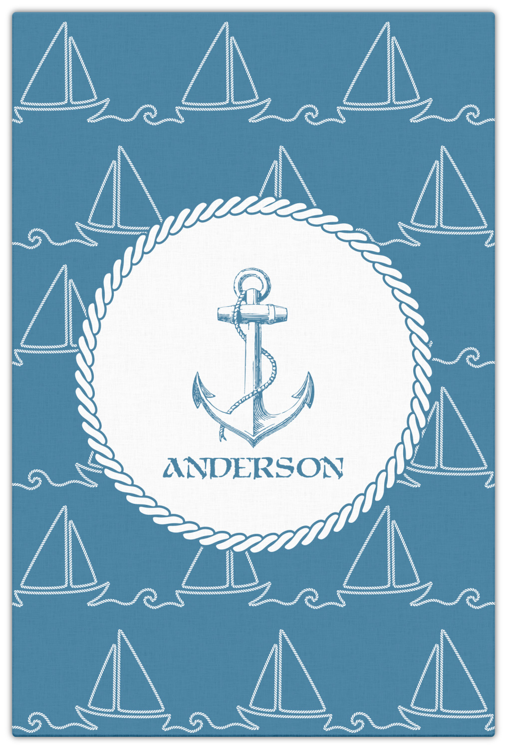 In the center of the design is a roped label and anchor. Put the personalization of your choice underneath.