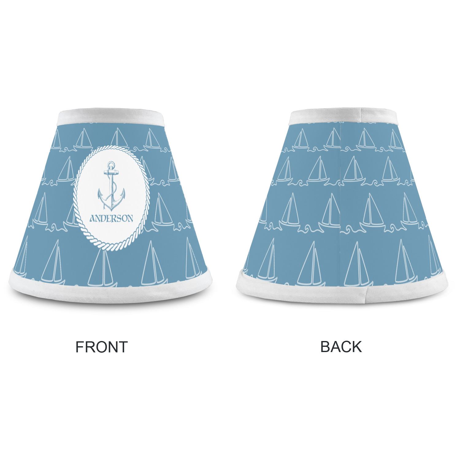In the center of the design is a roped label and anchor. Put the personalization of your choice underneath.